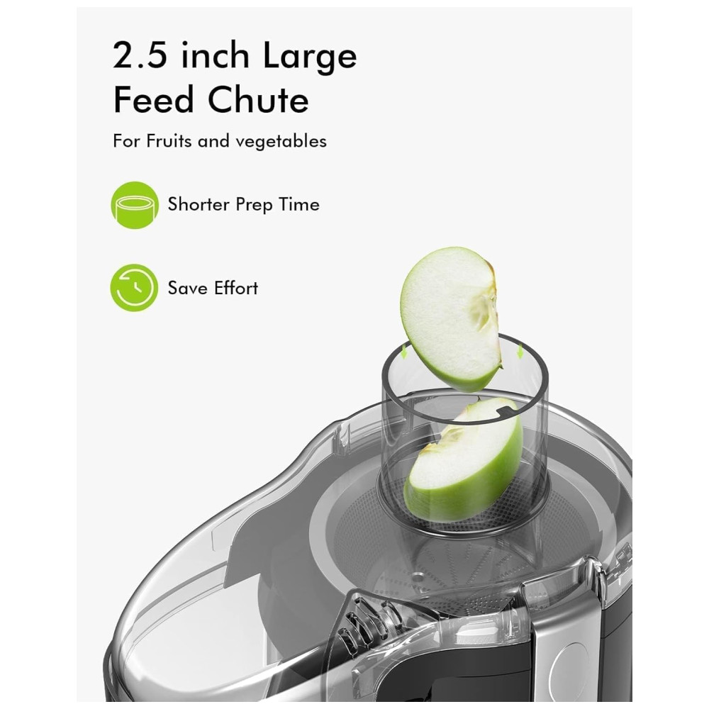 Tempo de preparação curto, suco 8 segundos mais rápido Nosso espremedor centrífugo, alimentado por um motor de 350 W com pico de 500 W, garante a extração rápida de nutrientes de frutas e vegetais. Obtenha sucos deliciosos e ricos em vitaminas mais rapidamente do que os espremedores tradicionais tudo em apenas 8 segundos. Desfrute de desempenho máximo e resultados mais saborosos.