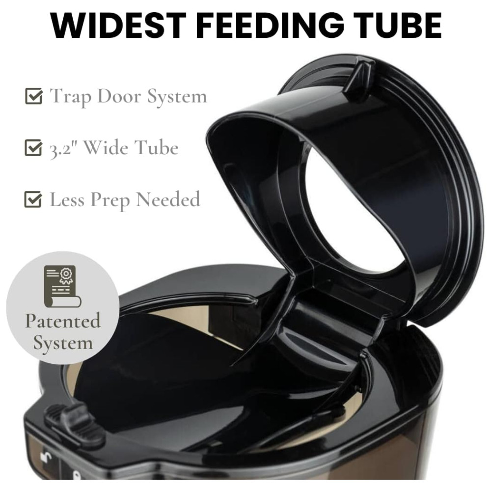 Com o tubo de alimentação mais largo de todos os tempos, economize tempo sem ter que cortar ou preparar produtos. O motor potente de 240 W e o eixo helicoidal extra grande garantem sempre um suco consistente e suave. O espremedor funciona a suaves 50 RPM, permitindo que a maior parte do suco seja extraído a frio de cada tipo de produto.