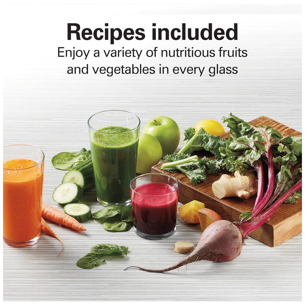 FAÇA SUCOS FRESCOS E SAUDÁVEIS EM SEGUNDOS O Extrator de Sucos Big Mouth tem um potente motor de 800 watts e controles simples de ligar, desligar para sucos rápidos e extração máxima de sucos. Faça facilmente deliciosos sucos caseiros de todas as suas frutas e vegetais favoritos.