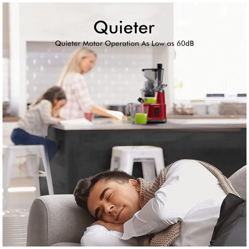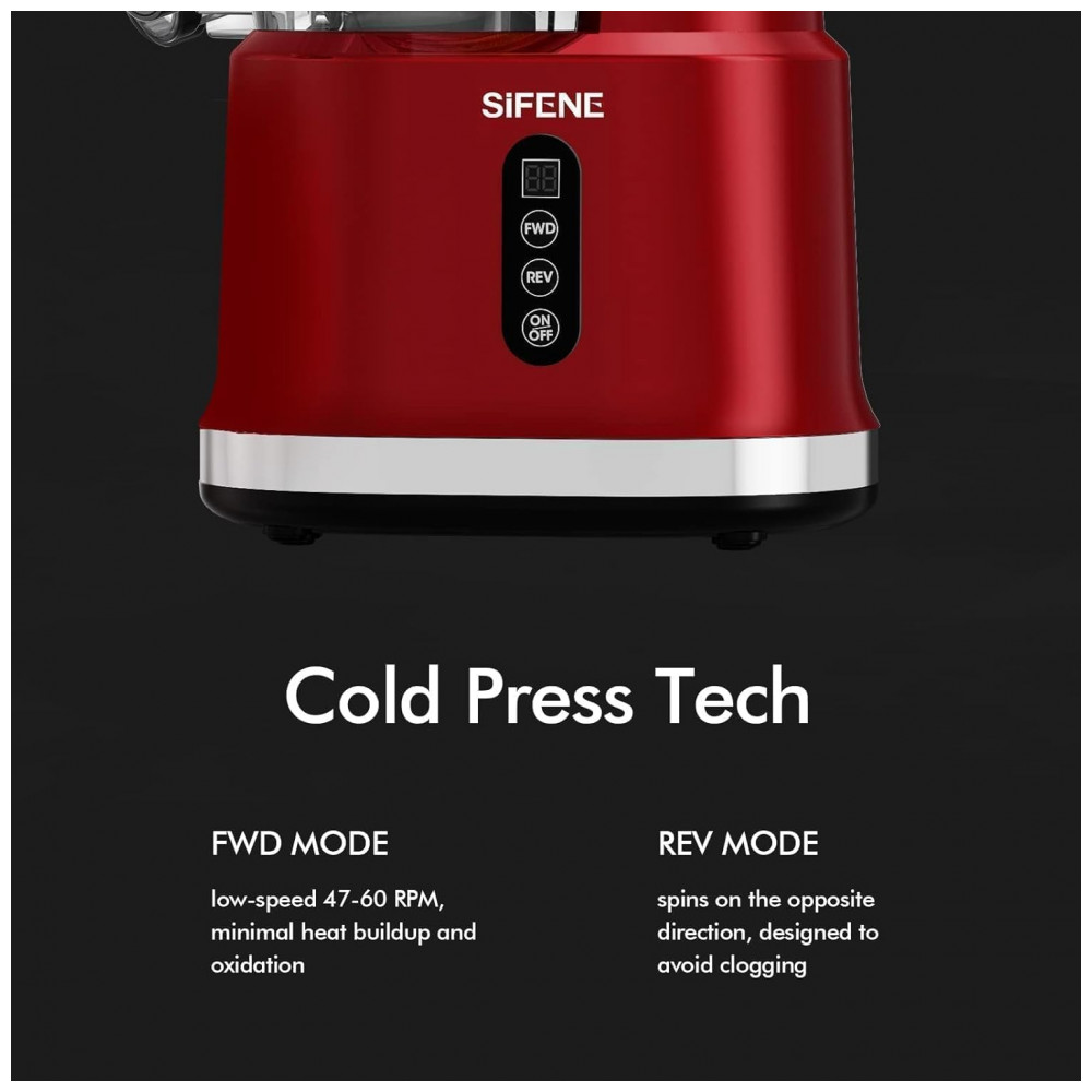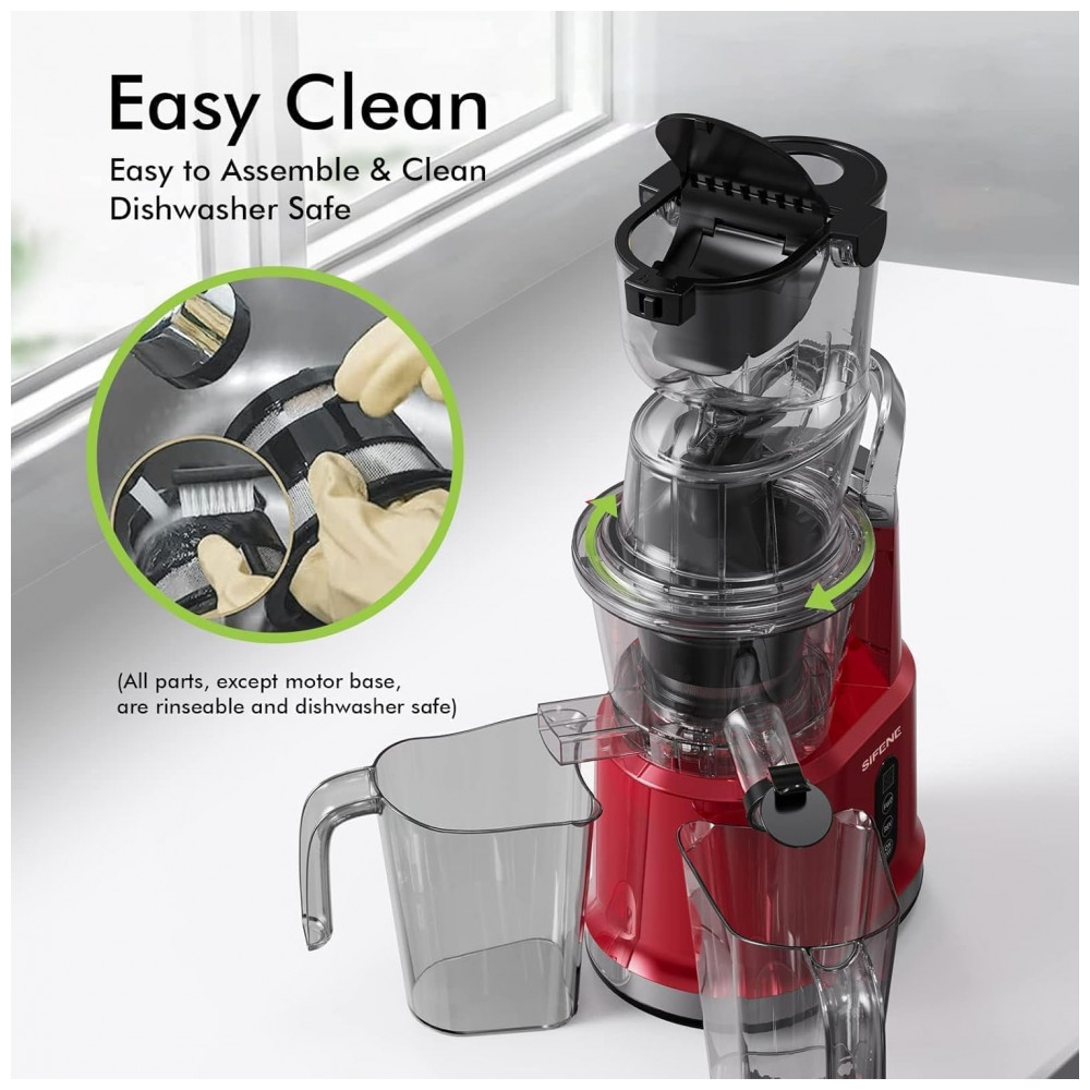 Grande rampa de alimentação dupla: Com o espremedor vertical de prensa a frio da SIFENE, fazer suco é muito fácil. Sua rampa de frutas inteiras de e a rampa de vegetais de permitem que você faça suco sem picar primeiro. Economize tempo e aproveite mais suco de seus produtos.