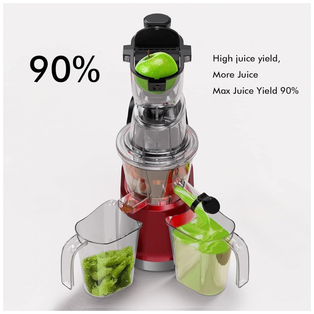 Alta Nutrição: Nosso espremedor lento aumenta significativamente o rendimento do suco em 90. Projetado para extrair cada gota de frutas e vegetais, oferece mais suco com menos desperdício uma escolha prática e econômica.