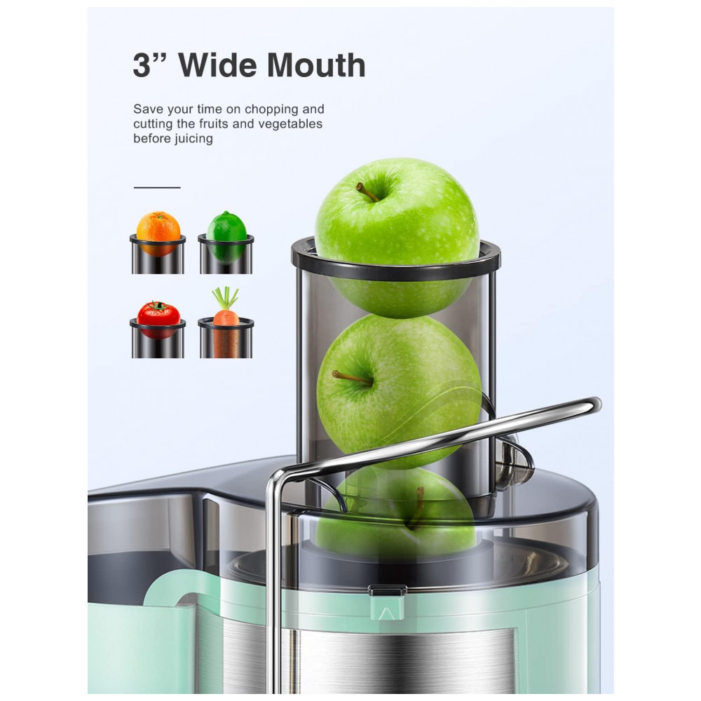 Centrífuga de Frutas com Bocal Largo Fácil de Limpar em Aço Inoxidável 110V 500W QCen Azul Turquesa