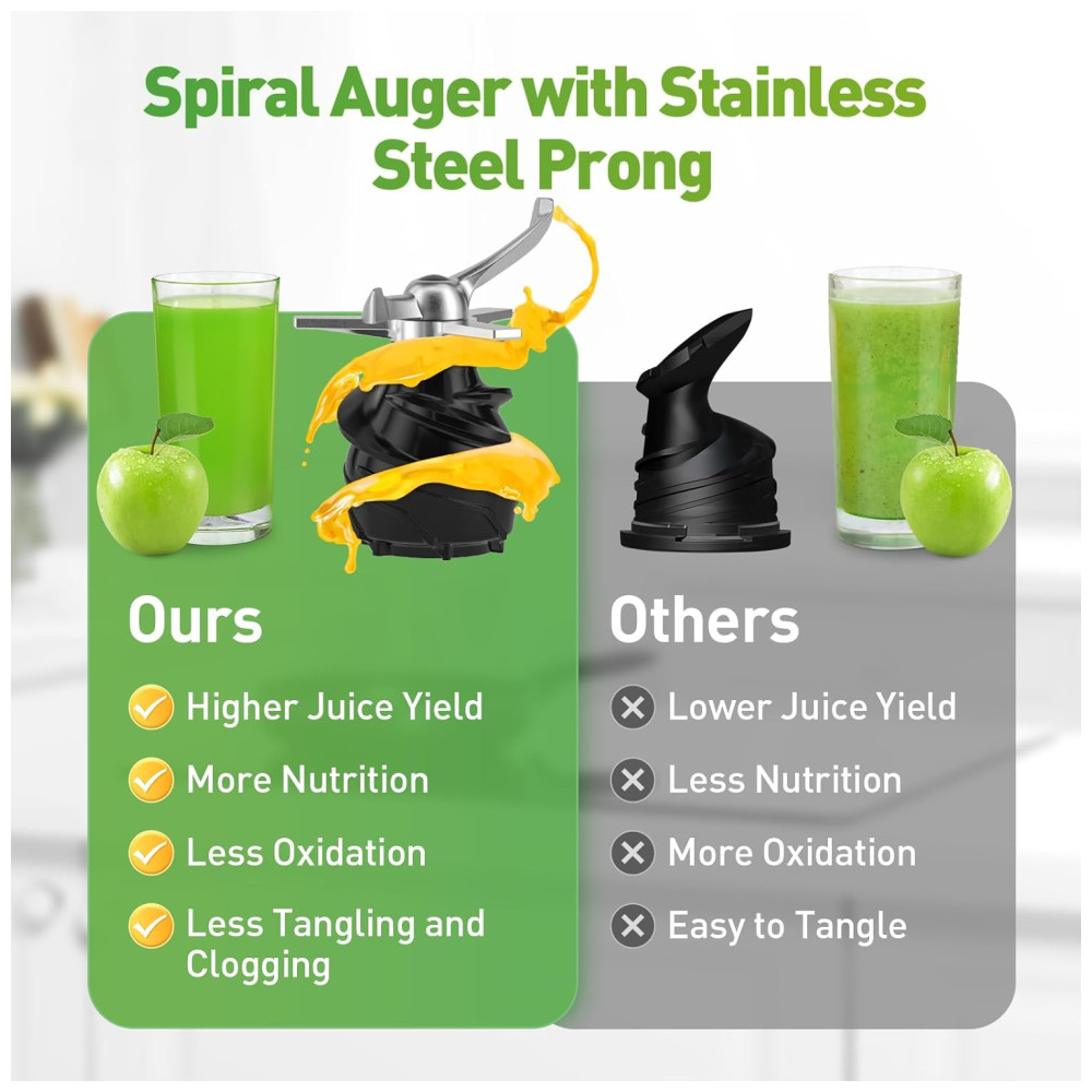 O Espremedor Espiral com Espremedor Lento de Prong de Aço Inoxidável é um produto de alta qualidade da Secura, que se concentra em fornecer aos compradores a melhor experiência do usuário. Equipado com Prong de aço inoxidável, ele mói a polpa de forma mais completa, retém a maior parte dos nutrientes, reduz o emaranhamento e entupimento durante o processo e separa perfeitamente o bagaço do suco.