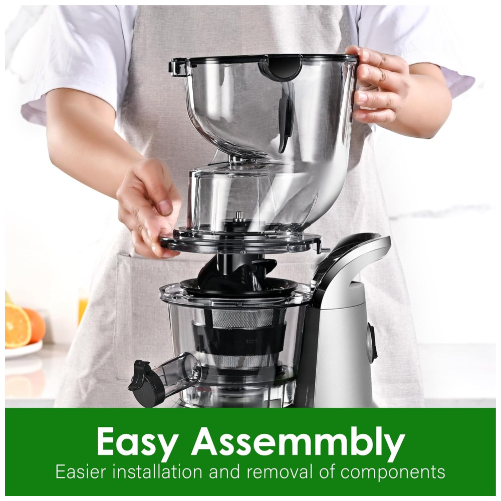 Equipado com um motor potente, com seu princípio de suco por extrusão de baixa velocidade, nosso espremedor de suco Cold Press lida sem esforço até mesmo com os produtos mais difíceis, extraindo até a última gota de suco. Esteja você desejando sucos de frutas refrescantes ou misturas nutritivas de vegetais, este versátil espremedor oferece sempre resultados excepcionais.