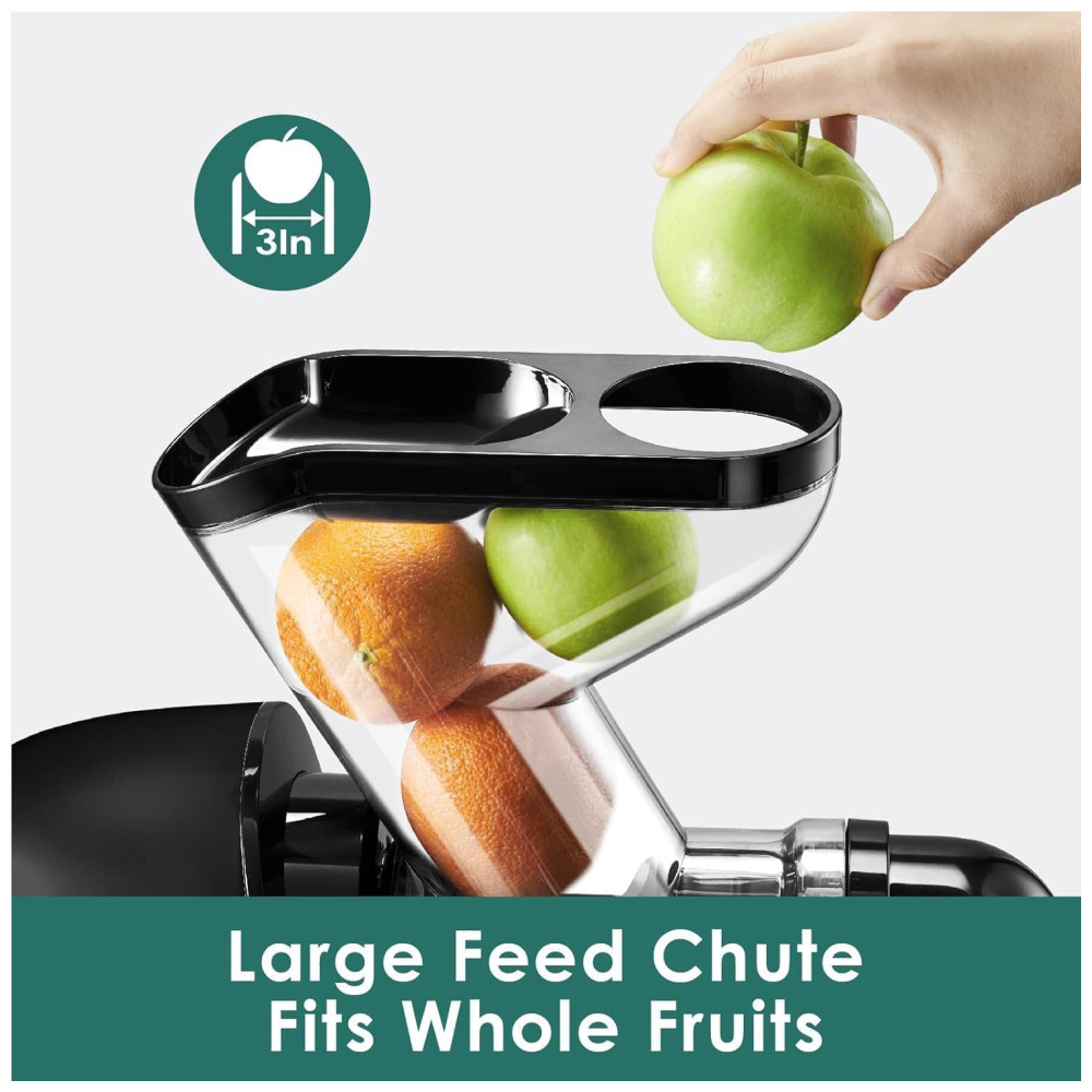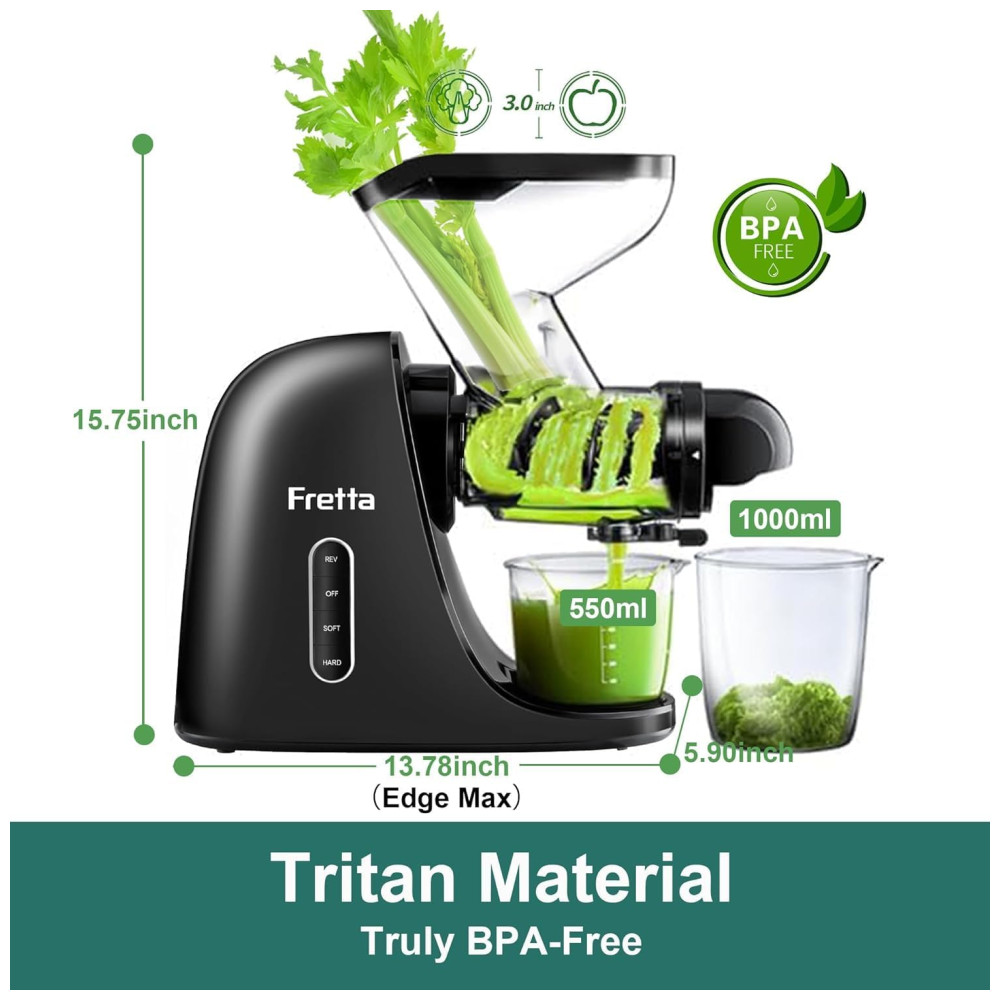 Extrator de Sucos Fretta Masticating Preta 18L Prensa Fria Tritan Chute Largo Y 200W 2 Velocidades Limpeza Fácil 110V