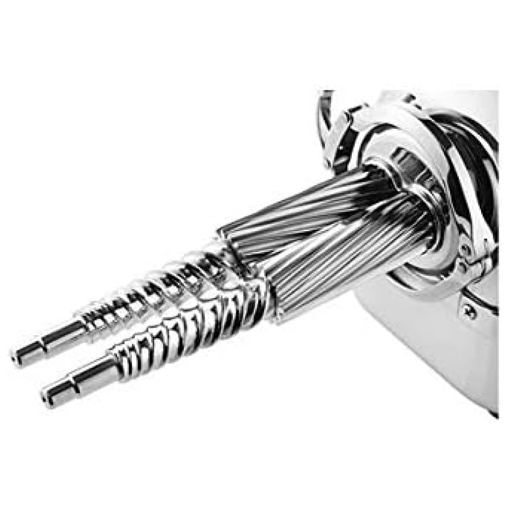 100 Aço Inoxidável As peças principais Conjunto de Engrenagens Duplas, Filtro da Caixa, Proteção Contra Respingos do Angel Juicer AG 8500S são feitas de aço inoxidável de grau cirúrgico SUS 316. O aço inoxidável é durável, higiênico e fácil de limpar. E também dá uma aparência bonita e luxuosa. O grau cirúrgico é mais higiênico e resistente a produtos químicos à base de sal.