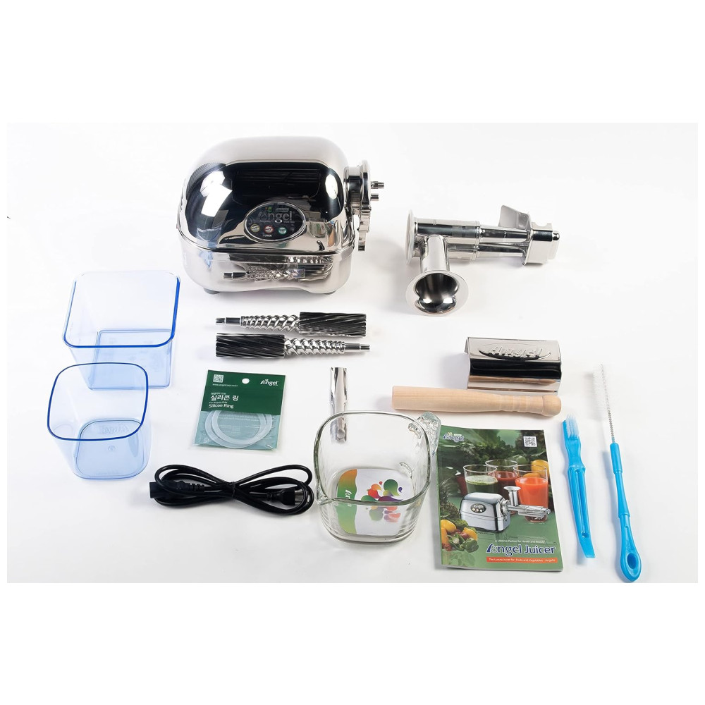 Tecnologia LSCS e MSE usada para obter mais nutrição, bem como mais suco de frutas e vegetais. Lâminas de alta velocidade e engrenagens de espremedores comuns não podem esmagar as fibras e muitas vezes destroem os nutrientes com o calor que geram. Os Juicers Angel utilizam a tecnologia LSCS para fornecer mais nutrientes ao esmagar completamente as fibras enquanto produzem menos calor.