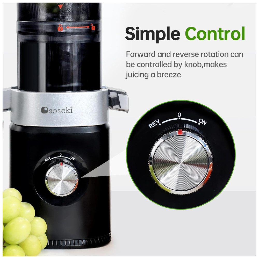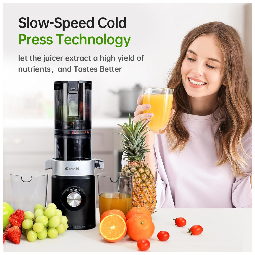 Centrifuga de Frutas com Motor Potente Mastigação Lenta e Fácil de Limpar 110V 150W Soseki Preta