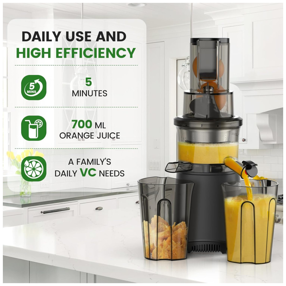 Experimente uma eficiência de extração de suco incomparável com nossa prensa a frio de espremedor lento, que integra tecnologia antientupimento e um motor robusto de 200 W. Ele opera com um ruído silencioso de 65,0 DB, permitindo que você faça sucos matinais sem perturbar a paz da sua casa.