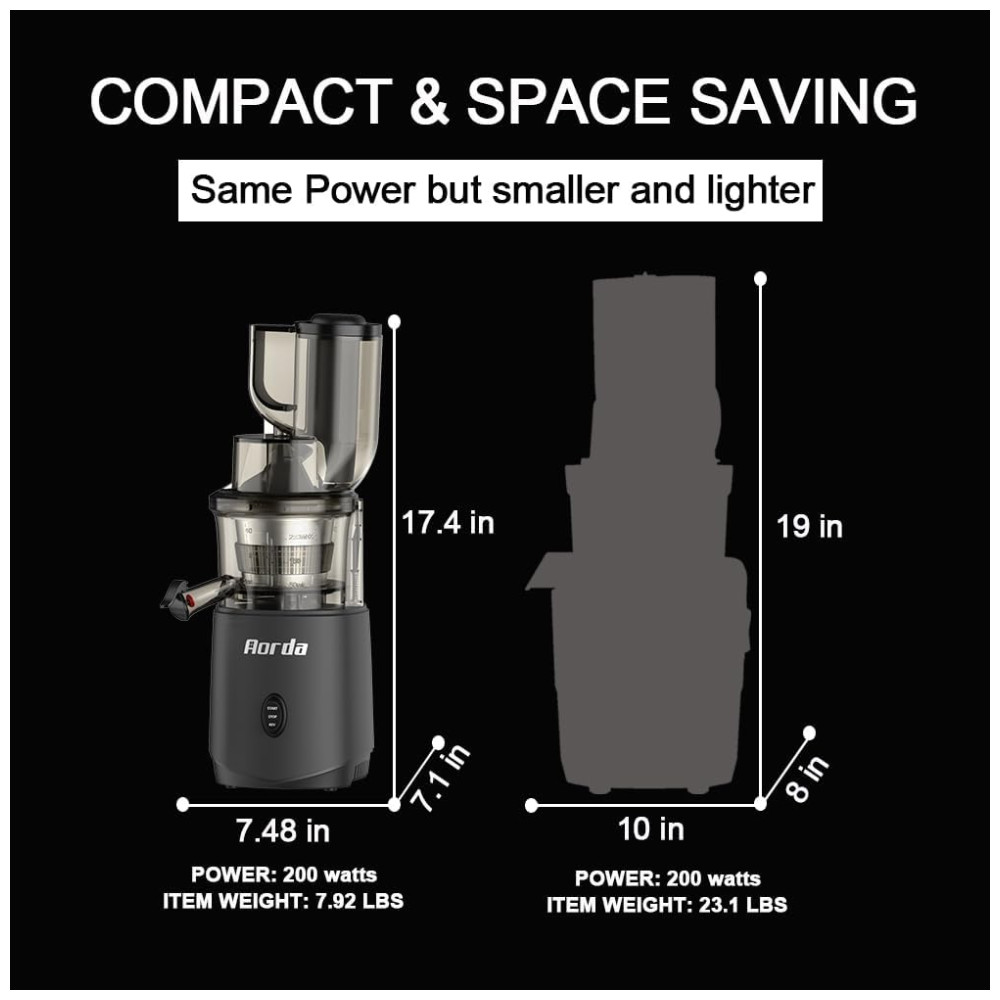 O espremedor de frutas mastigador a frio Aorda possui um design elegante e compacto, tornando o ideal para cozinhas pequenas ou aquelas com espaço limitado no balcão. Com entradas duplas de 7645MM, esta máquina de espremedor lento pode acomodar vegetais e frutas inteiras, reduzindo o tempo de preparação e fazendo sucos mais conveniente.