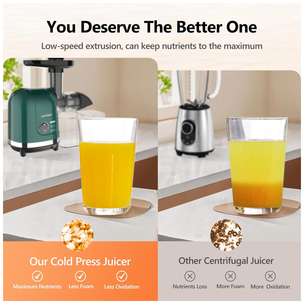 Centrifuga de Frutas com Prensa a Frio Polpa Separada Motor Silencioso de Fácil de Limpar 110V 200W LUFVEBUT Verde