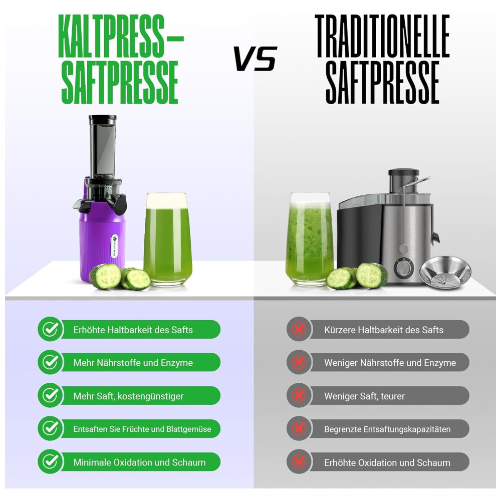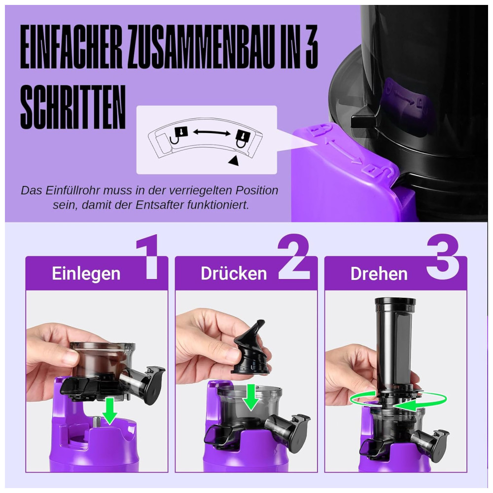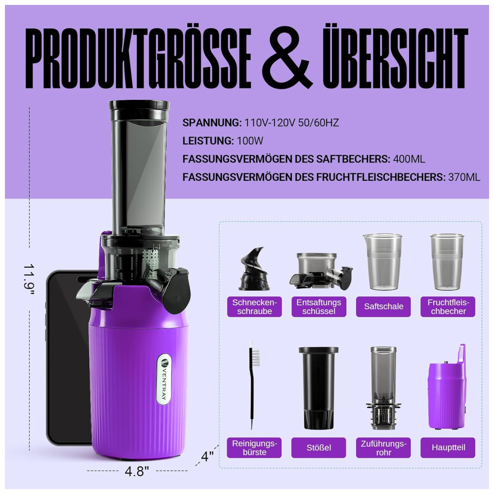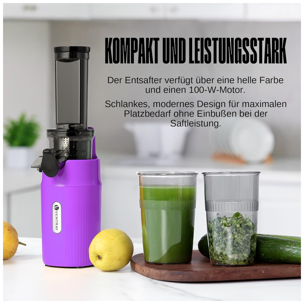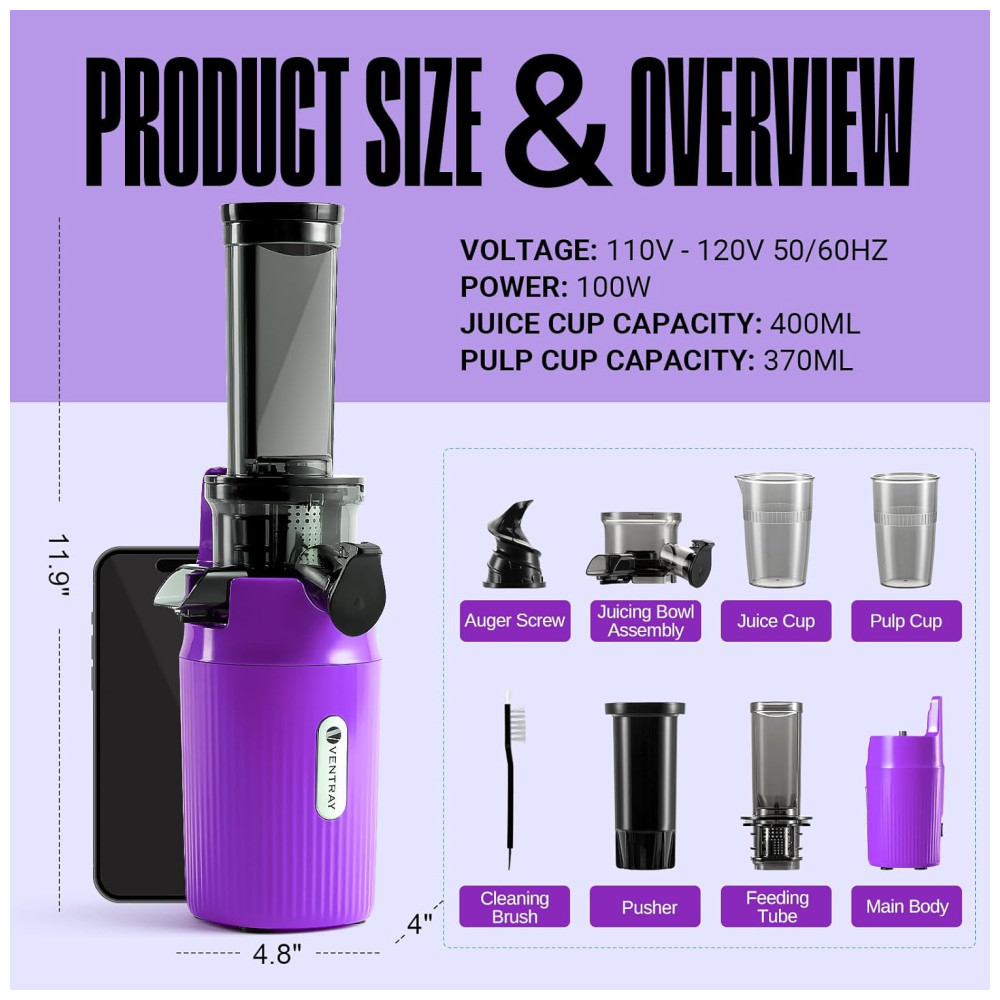 Centrifuga de Frutas Compacta com 60 RPM de Baixa Velocidade Inclui Escova de Limpeza 110V 130W Ventray Roxa