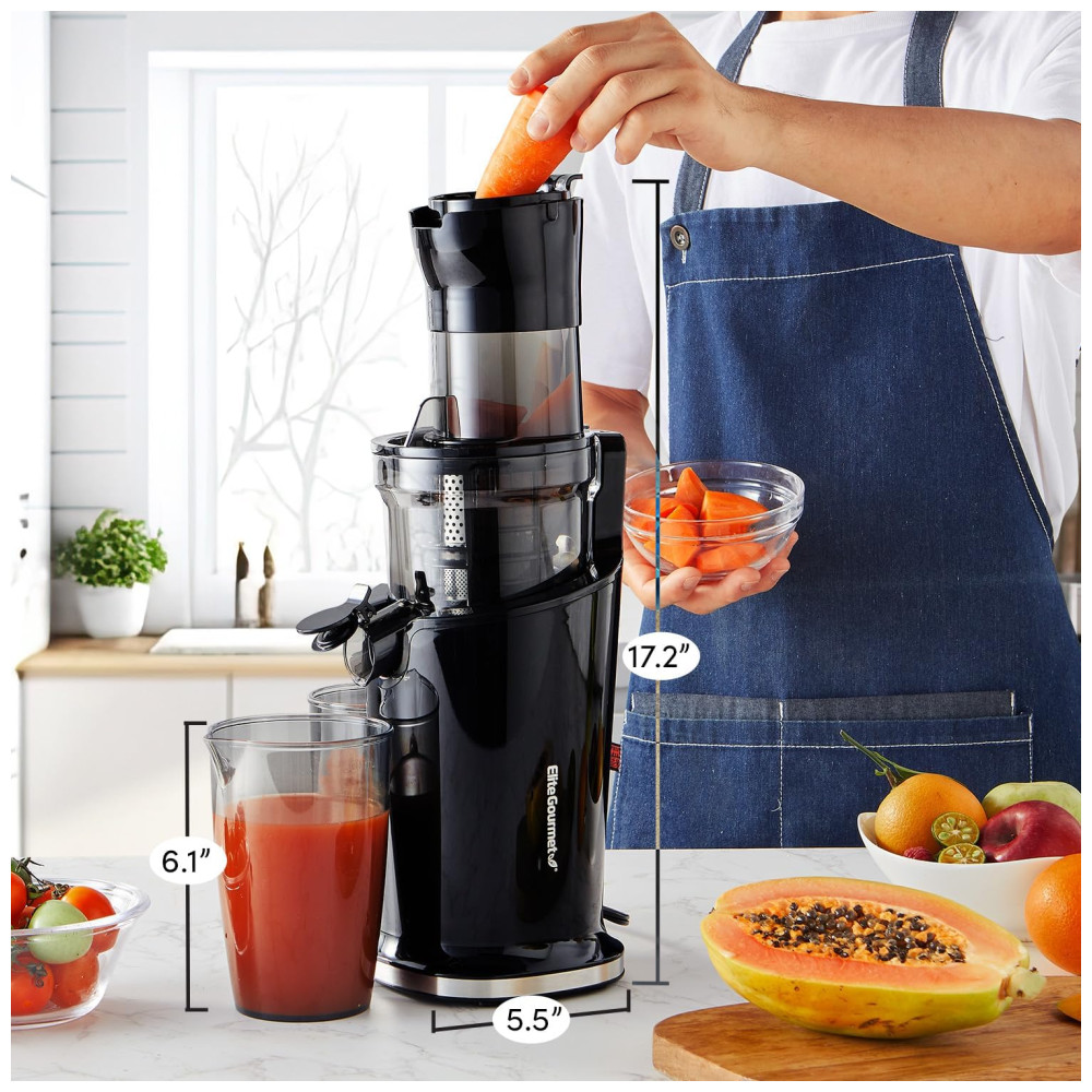 Faça suco delicioso e nutritivo com o Espremedor Lento Elite Gourmet EJX017 Dynamic Cold Press Masticating. Com uma calha de 3 alimentações, ele aceita até 3 frutas e vegetais inteiros, sem a necessidade de cortá los. Basta adicionar os alimentos frescos e o espremedor fará o resto. Projetado para separar totalmente a polpa do suco, o Espremedor Lento Elite Gourmet garante que você aproveite a quantidade máxima de suco, sabor e benefícios à saúde em suas bebidas.