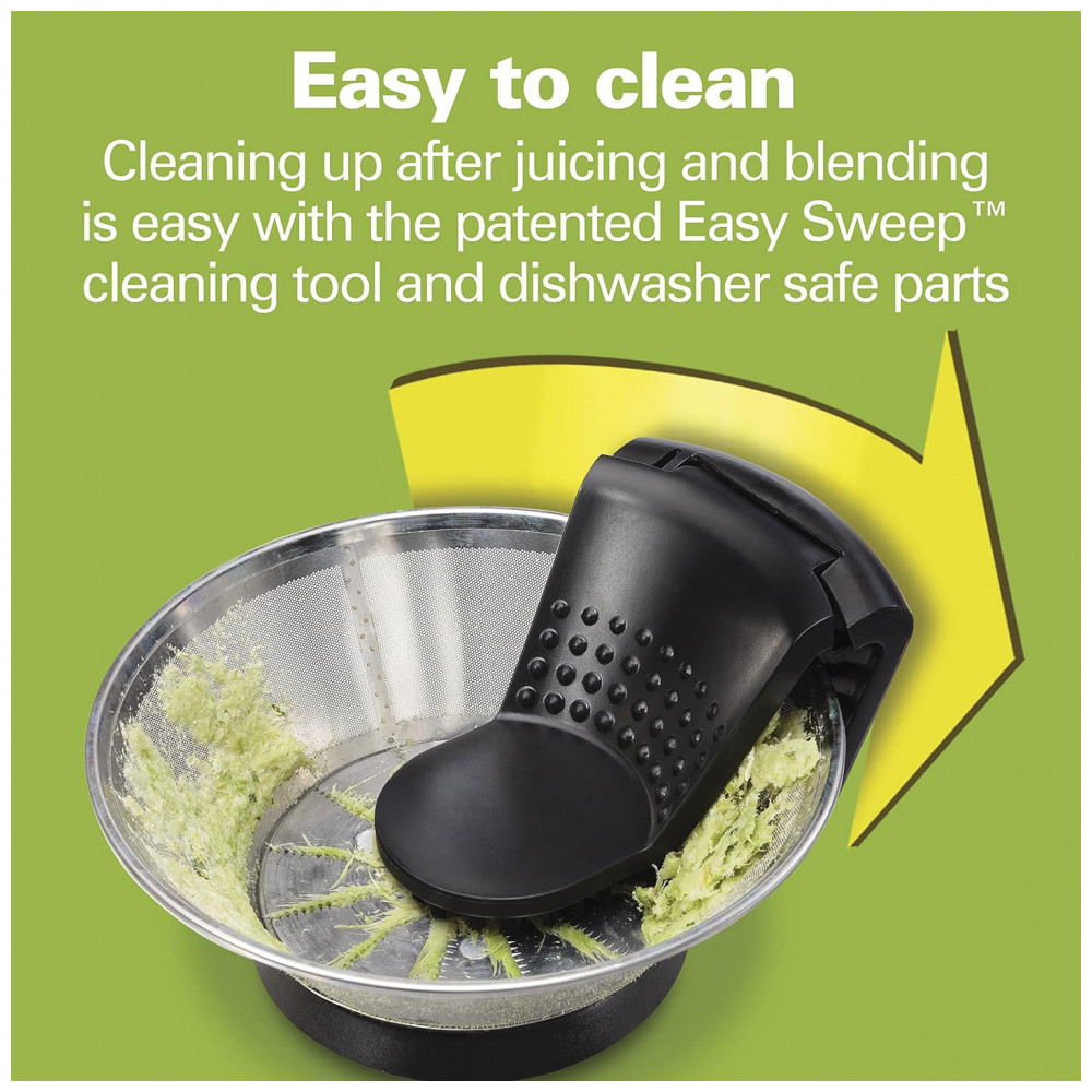FÁCIL DE LIMPAR: Limpar após extrair o suco e misturar é fácil com a ferramenta de limpeza patenteada Easy Sweep ela reduz pela metade o tempo de limpeza do filtro. Para finalizar o trabalho, basta colocar a ferramenta e todas as peças removíveis na máquina de lavar louça para facilitar a limpeza