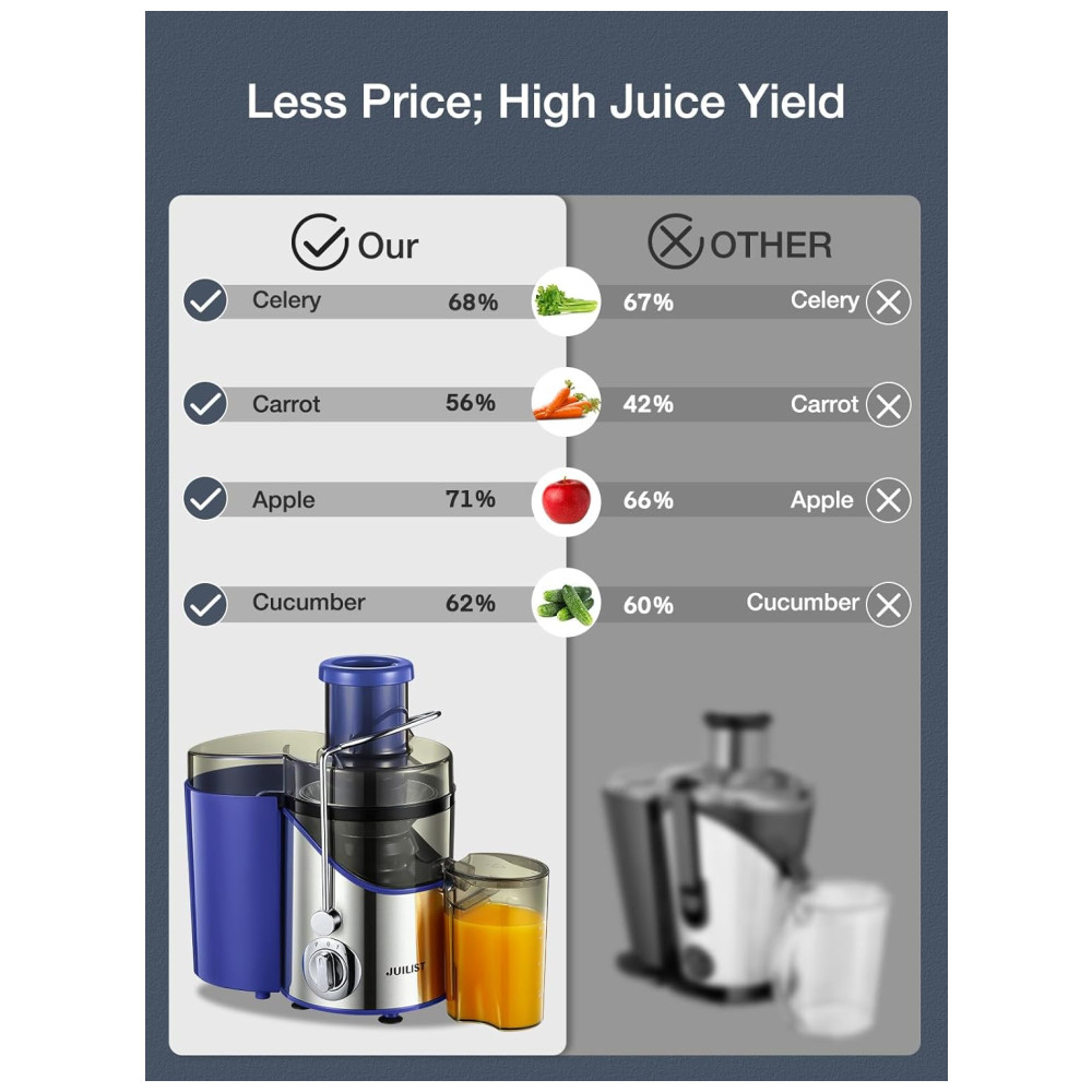 Você está procurando um espremedor com um rendimento de suco que ocupa pouco espaço no balcão O design compacto ocupa pouco espaço na sua bancada. Após testes repetidos em laboratório, o rendimento de suco do nosso espremedor extrai até 26 mais suco e 36 mais vitaminas e minerais do que outros espremedor de 800w.