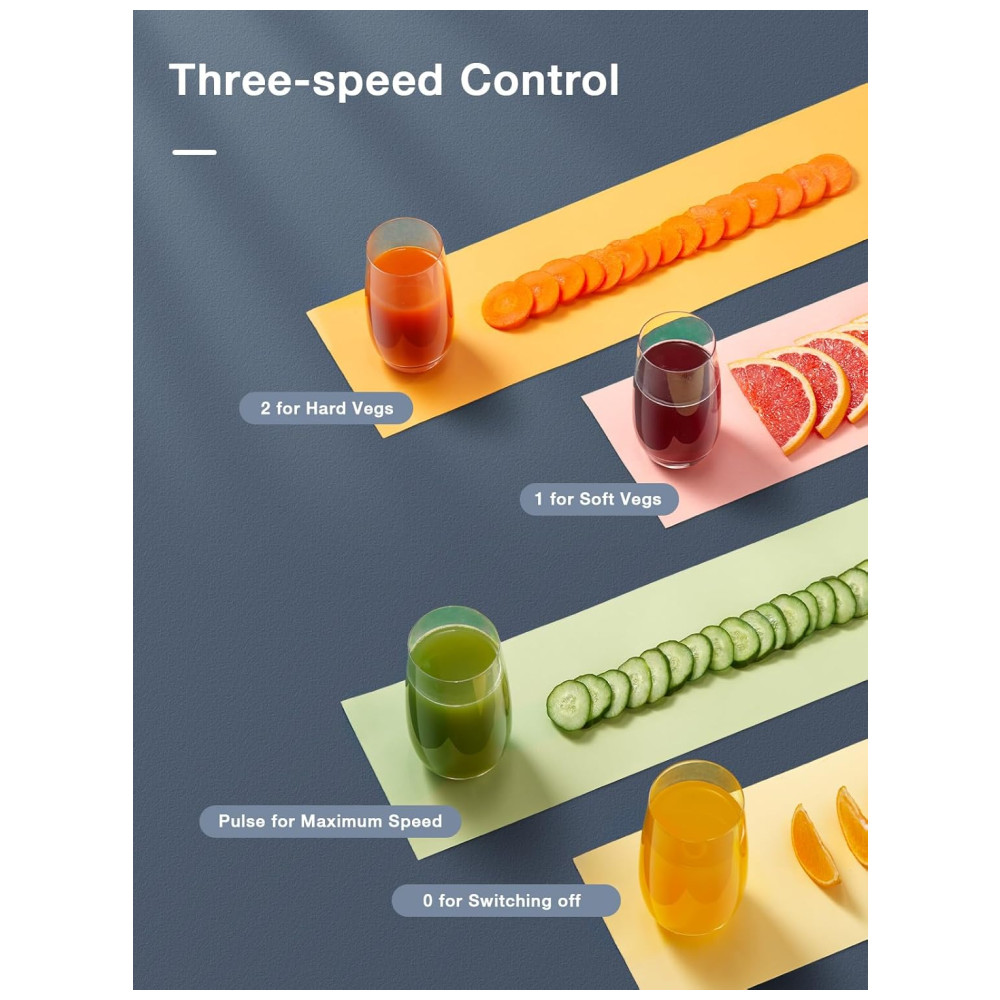 Velocidades: 1 é uma velocidade baixa, para vegetais de frutas moles como laranjas, melancia, tomate, etc 2 é uma velocidade alta, para alimentos duros como maçã, cenoura, etc, aipo, etc. P é a velocidade mais altaAcance a velocidade máxima após a liberação. Personalize seus sucos favoritos, torna a cozinha mais colorida, você pode suco um monte de suco fresco e beber para reabastecer energia e nutrição quando necessário.