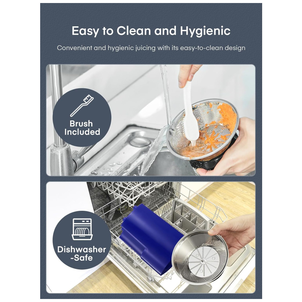 Quer que a limpeza após o suco seja uma brisa Com um pincel para limpar o filtro de sucos, acessórios s para a máquina de lavar louça, livres de BPA e PFOAs, a limpeza nunca parecerá uma tarefa árdua.