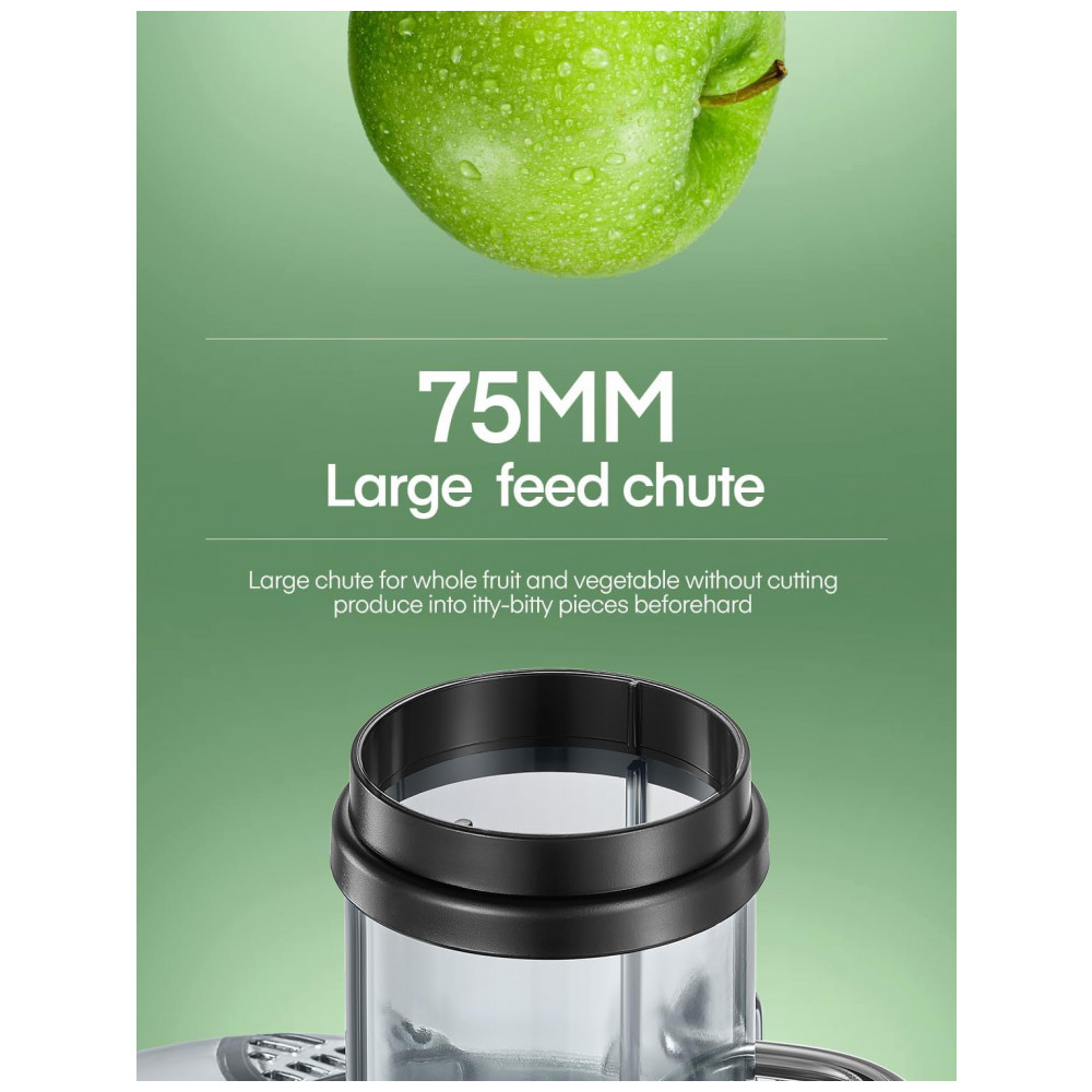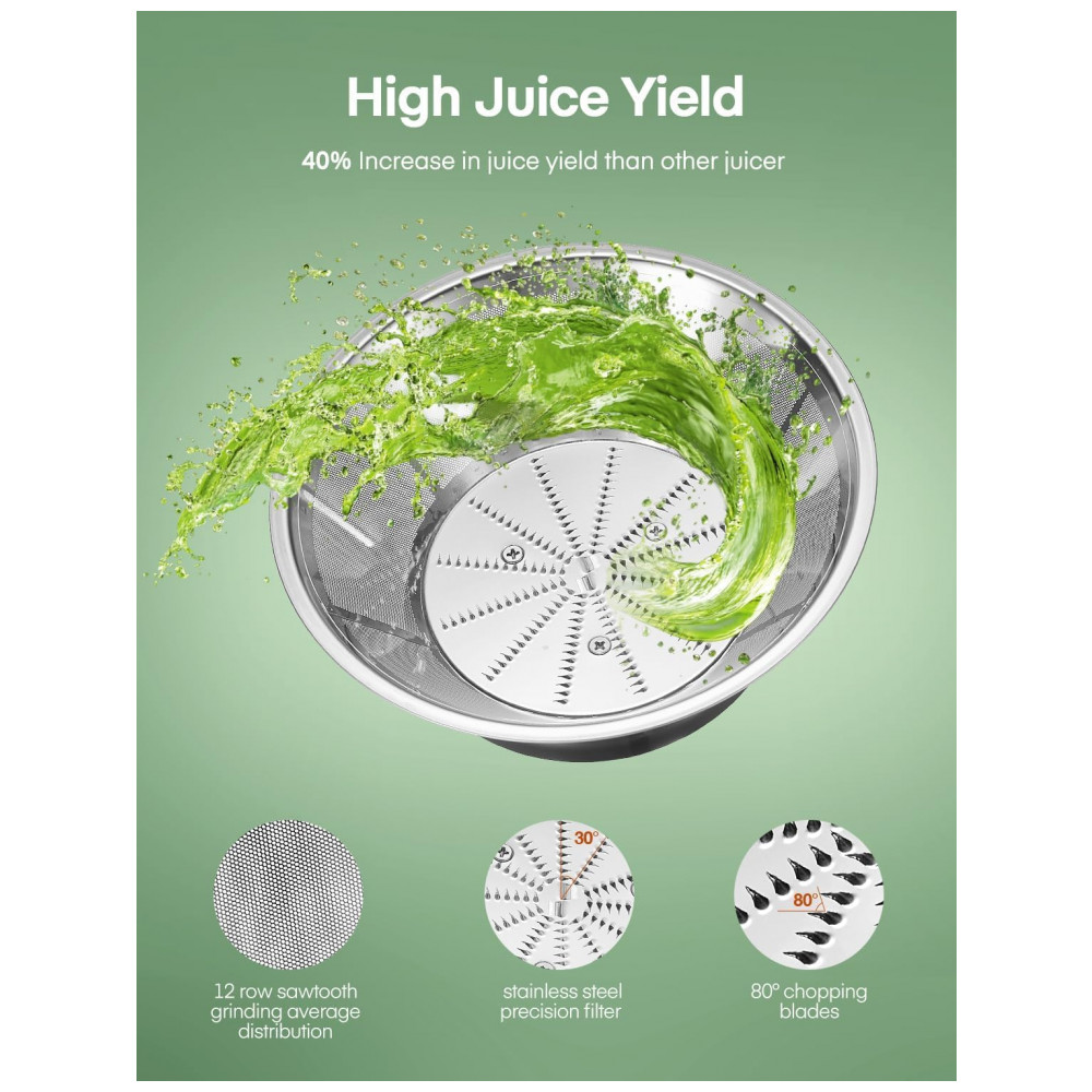 Mais saudável e nutricional A máquina espremedora usa materiais de qualidade alimentar, totalmente em aço inoxidável, filtros de precisão para proteger sua saúde em comparação com outros espremedores, você pode obter 75 mais suco e 60 mais vitaminas e minerais.