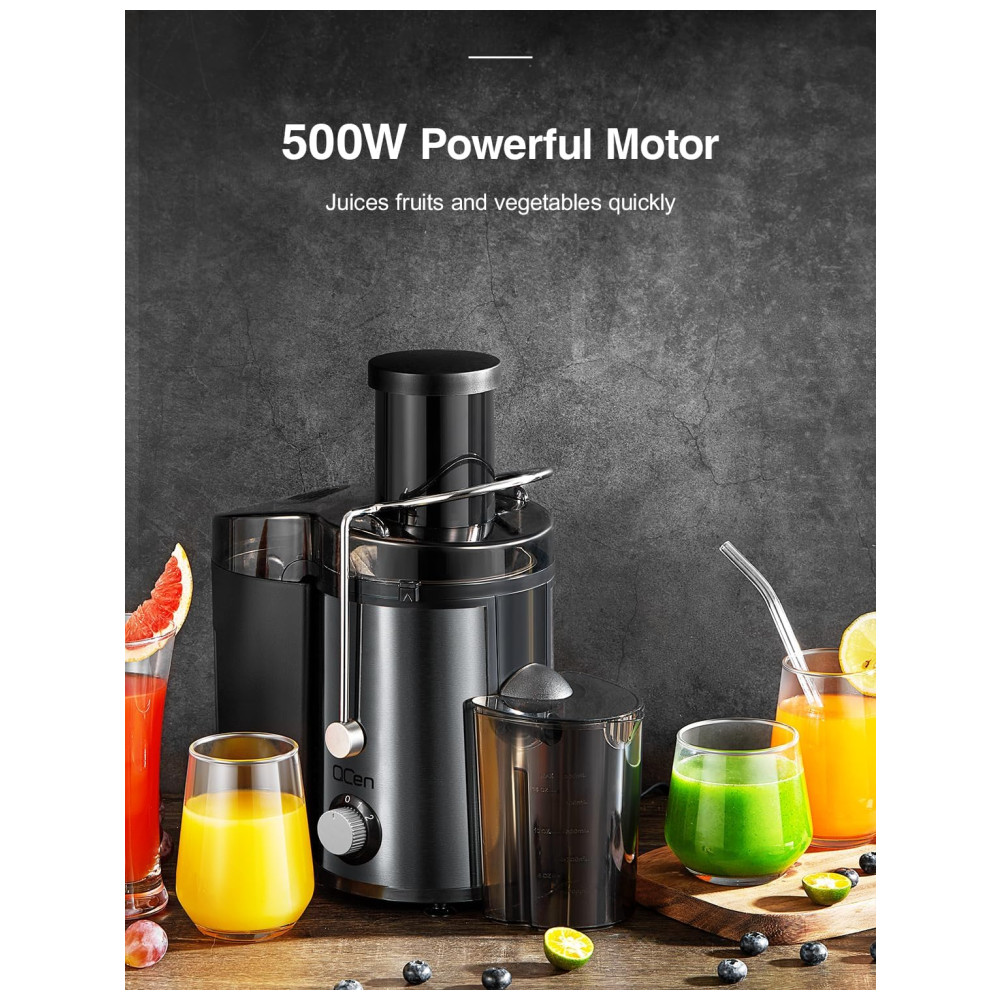 Motor de 800 W atualizado Máquina espremedora centrífuga com motor de alta velocidade de 800 W atualizado, mais eficiente e potente do que a máquina de espremedor de prensa a frio, dura muito mais do que outro concorrente. A boca de 7 centímetros de largura economizará seu tempo ao cortar tudo em palitos pequenos.