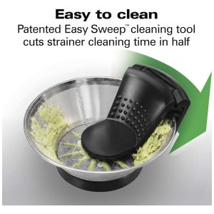 FÁCIL DE LIMPAR: A ferramenta de limpeza Easy Sweep limpa o filtro em um movimento simples, reduzindo pela metade o tempo de limpeza do filtro desta máquina de espremedor.