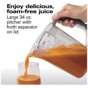 APROVEITE UM SUCO DELICIOSO E SEM ESPUMA: A jarra de 1 litro deste espremedor de frutas e vegetais tem um separador de espuma na tampa para que você despeje suco transparente e sem espuma em seu copo.