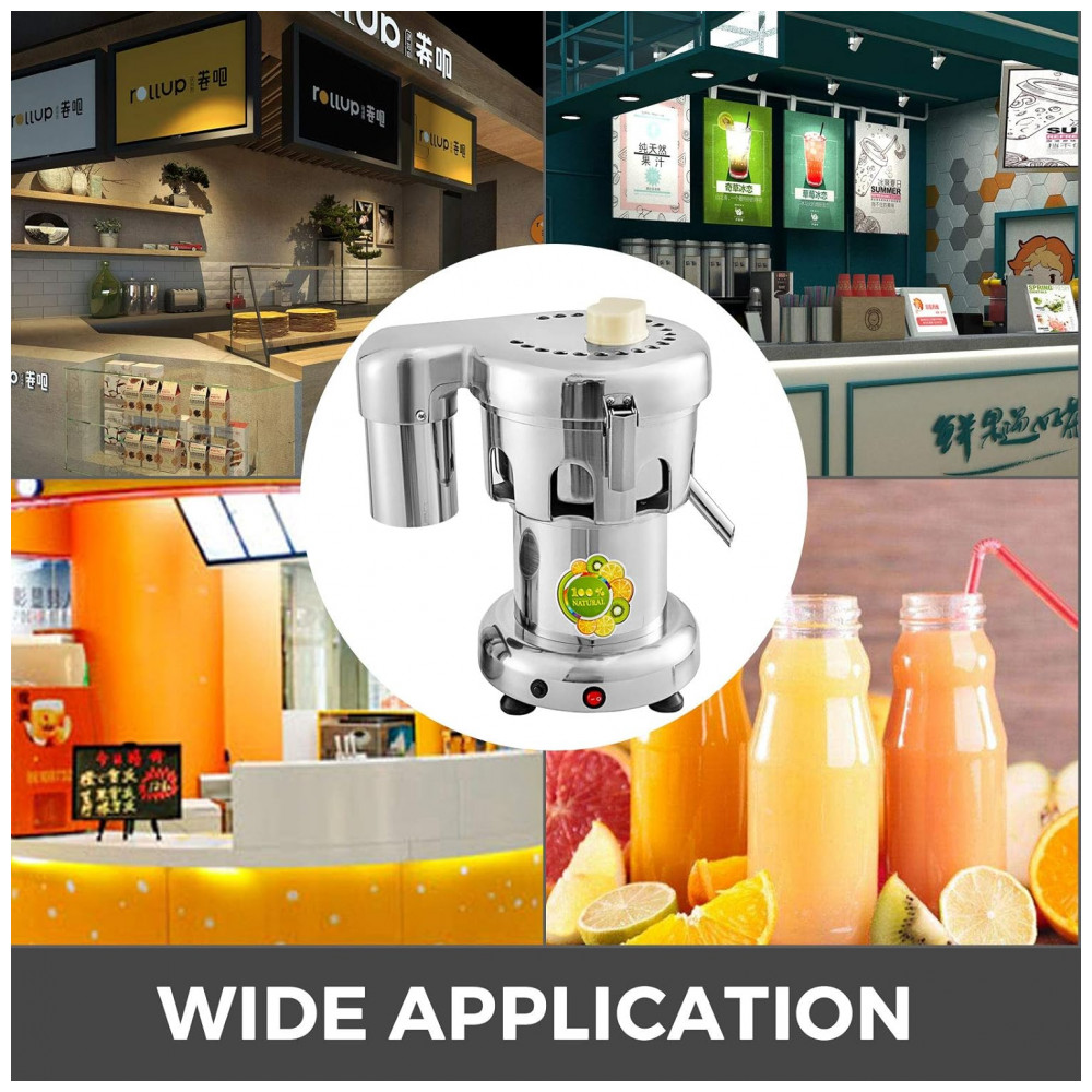 Ampla aplicação Extrator de suco , sucos facilmente de vários tipos de frutas e legumes de acordo com sua própria necessidade. Abertura grande permite colocar matérias primas inteiras. Ótimo para lojas de sucos, restaurantes, hotéis e uso familiar