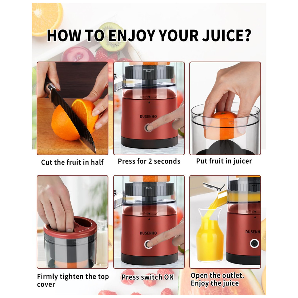 Centrifuga de Frutas Portátil Recarregável com USB e Escova de Limpeza DUSENHO 110V Vermelha