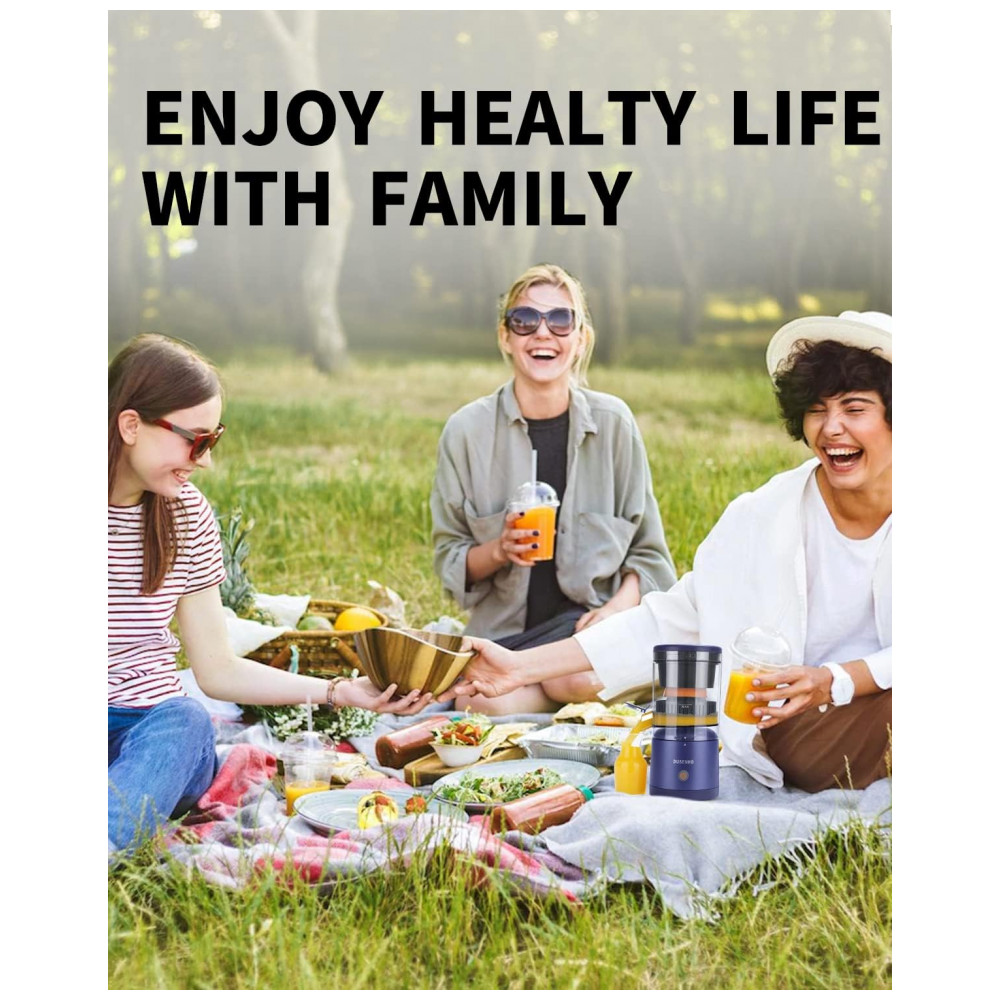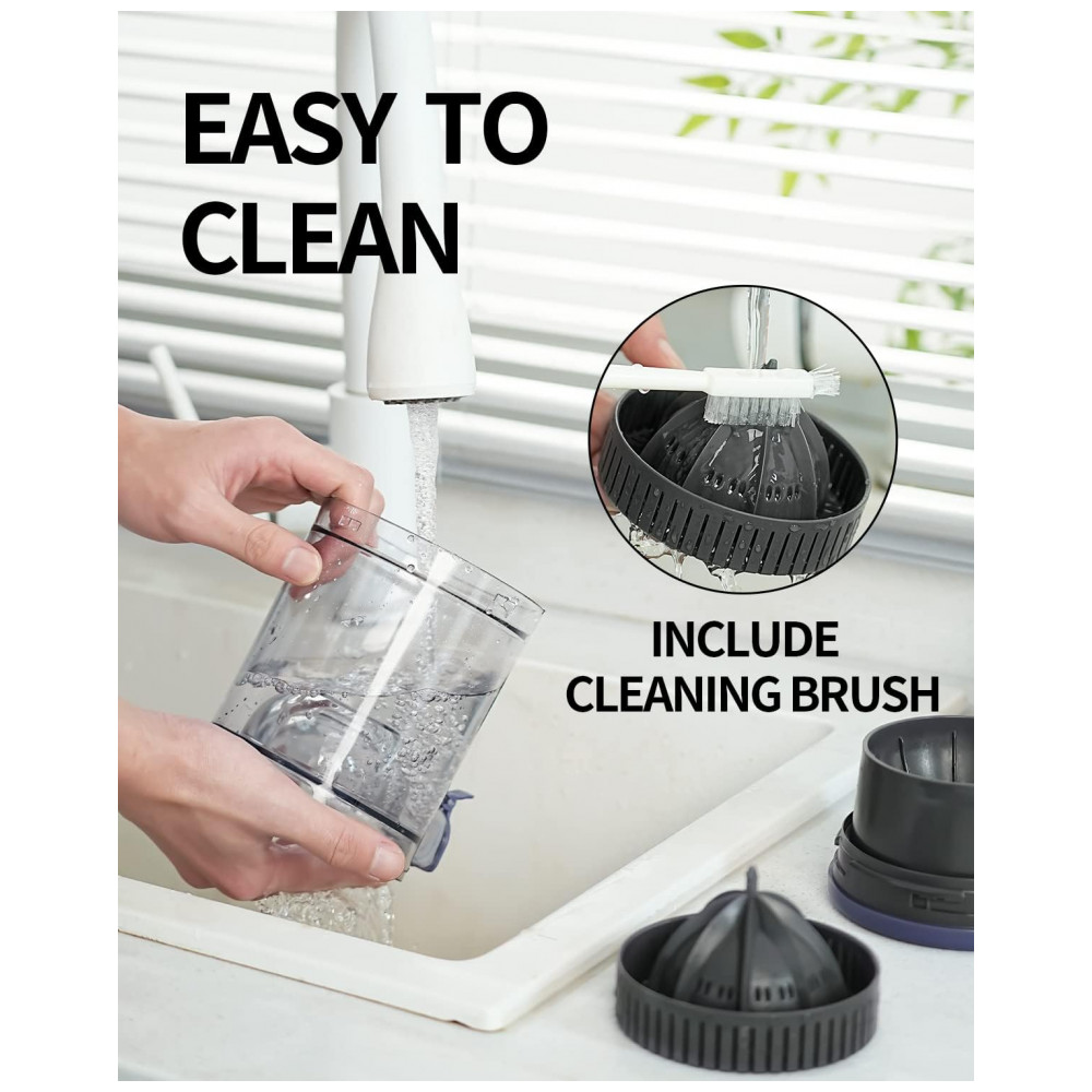 Fácil de usar e limpar Nosso espremedor elétrico é super fácil de limpar por causa de suas peças destacáveis. Ele vem equipado com uma escova para ajudar a limpá la, mas não lave o corpo principal elétrico, outras peças podem ser lavadas à mão.