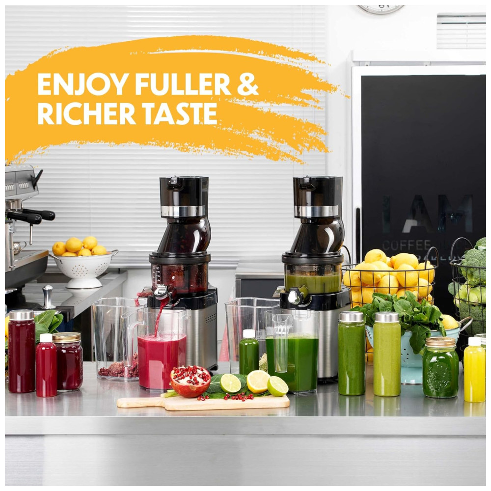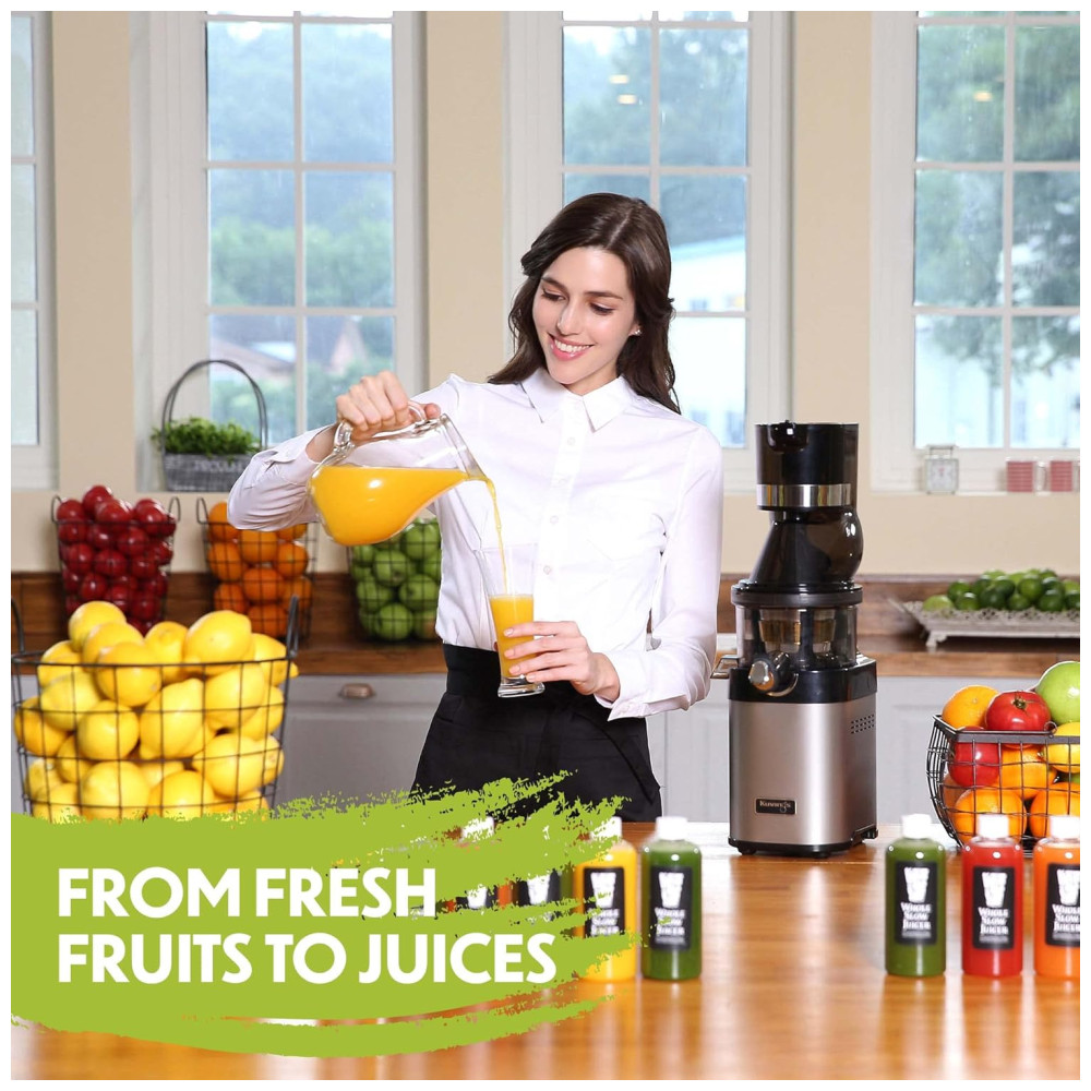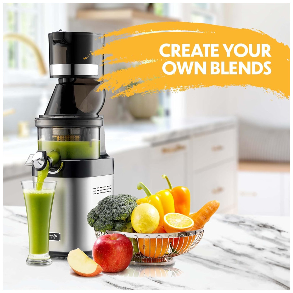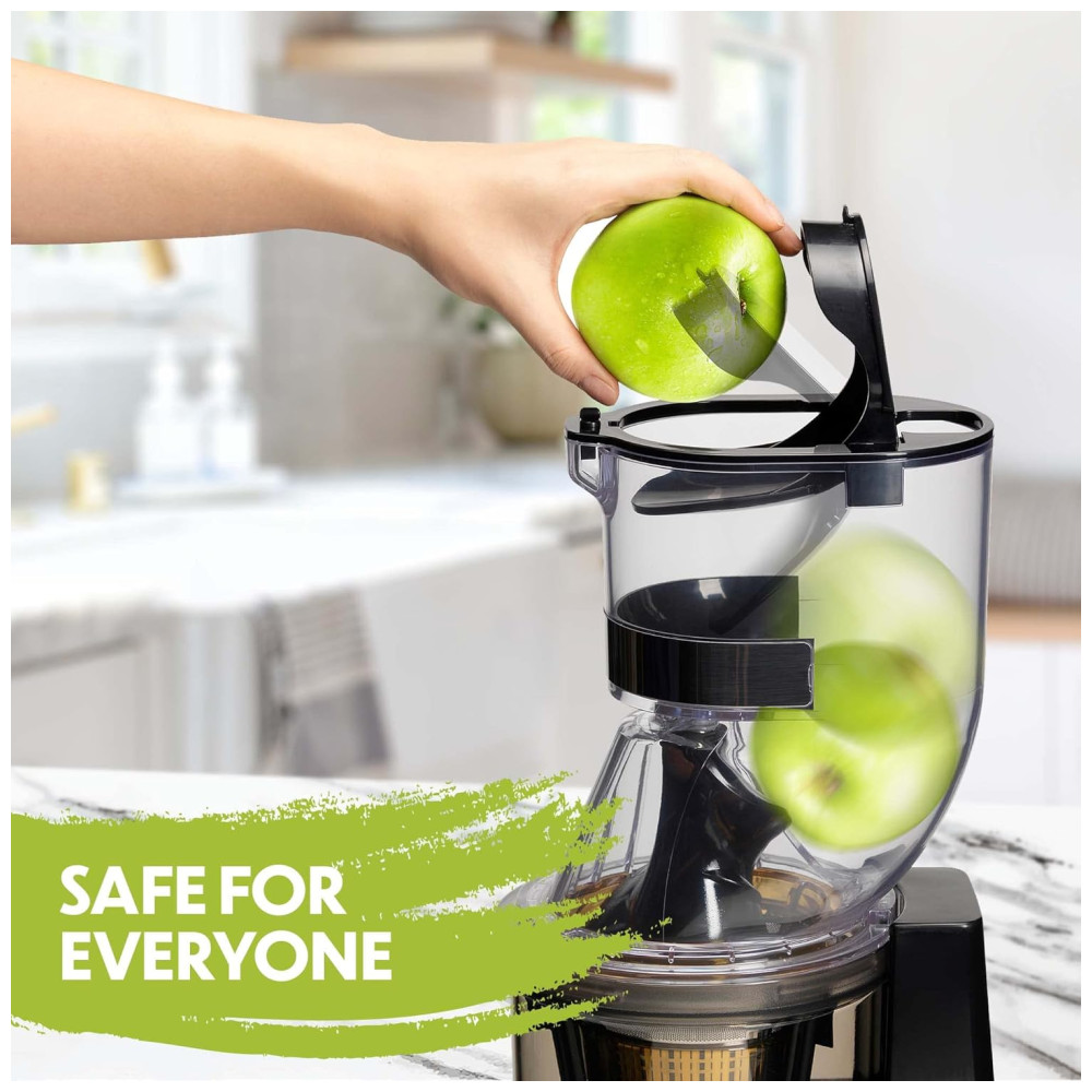 WHOLE SLOW JUICER O primeiro espremedor vertical de frutas , vegetais inteiros do mundo. O CS600 possui um portão flip de 88 m maior do que o tamanho da indústria, oferecendo uma ampla rampa de alimentação para inserir suas frutas e vegetais. Com seu design elegante, o CS600 vem com um conjunto superior extra para permitir uma mudança rápida entre as receitas. Além disso, o Smart Cap anti gotas ajuda a criar sucos misturados e a enxaguar entre as receitas.
