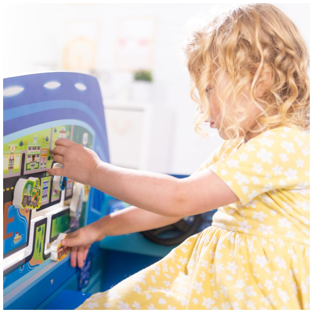Este centro de atividades de madeira resistente e multifacetado é perfeito para crianças a partir de três anos que adoram a Patrulha Canina. Com engrenagens para girar, quebra cabeça de dupla face, labirinto deslizante, volante, pedais de acelerador e freio, espelhos laterais rebatíveis, rodas que podem ser trocadas, lata de gasolina e tampa, painel com botões de som, partida do motor, gravador de voz, reprodução, localizador e telefone, este brinquedo oferece inúmeras opções de diversão para as crianças.