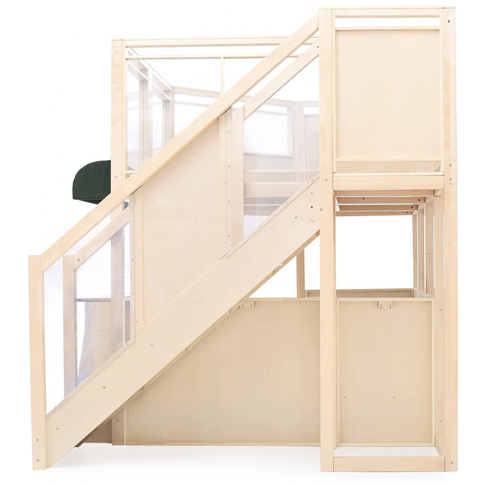 Conteúdo da embalagem: Estrutura do loft, módulos de cozinha, elementos de café, componentes de escalada, ferragens e manual de montagem