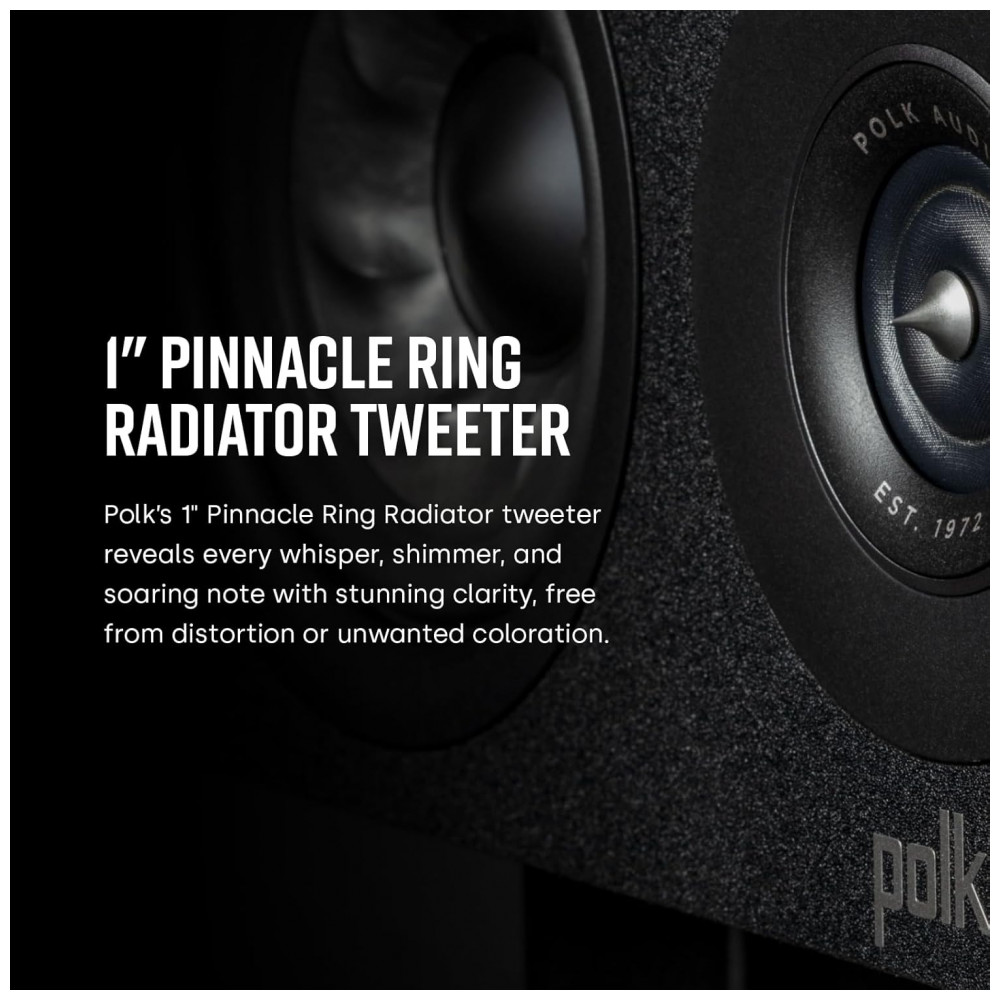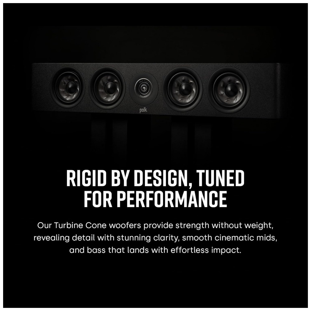Centro slim Polk Audio Reserve R350 preto caixa central e L/R surround tweeter anelar e quatro woofers turbina para Dolby Atmos passiva