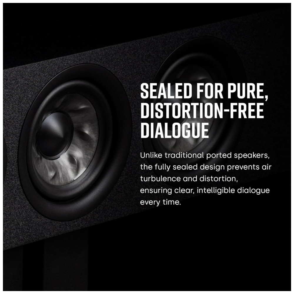 Com certificação para áudio de alta resolução e compatibilidade com Dolby Atmos e IMAX Enhanced, o modelo é adequado para sistemas multicanal em que a inteligibilidade de diálogos e clareza de efeitos sonoros são prioritárias. O gabinete selado, com travamento interno, reduz ressonâncias indesejadas, enquanto a grade magnética acústica de baixa difração oferece aparência discreta em preto sem comprometer a performance acústica.