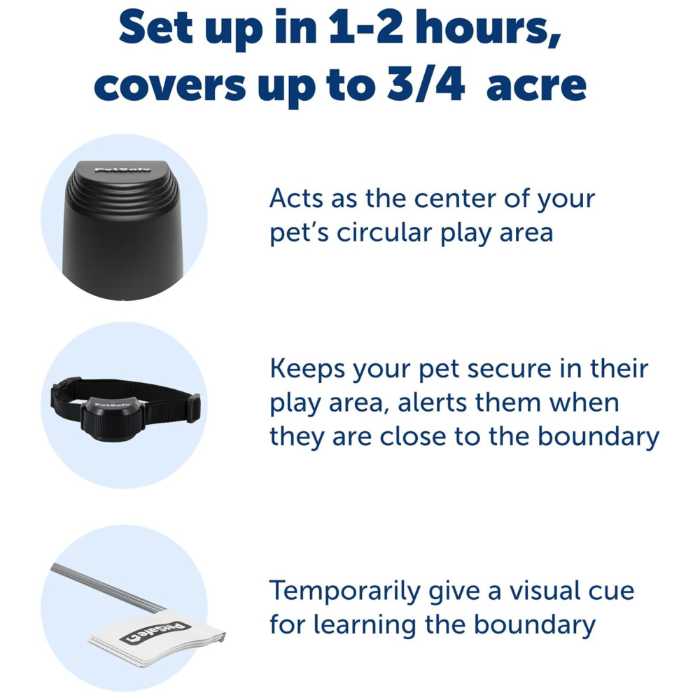CONFIGURAÇÃO SIMPLES Configure sua nova cerca sem fio em apenas 1 2 horas para dar ao seu cão uma área de jogo segura
