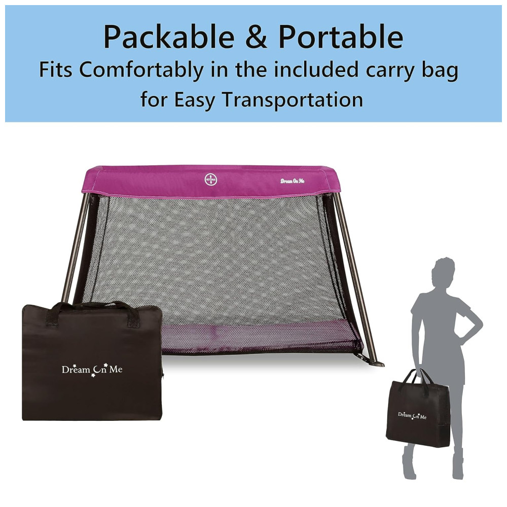 SEGURANÇA EM PRIMEIRO LUGAR: O Dream On Me Travel Light Playard tem alta pontuação em segurança e durabilidade. É fabricado com estrutura de alumínio resistente, possui costura reforçada e sistema de travamento para maior segurança. O tecido e a malha estão livres de alergênicos prejudiciais.