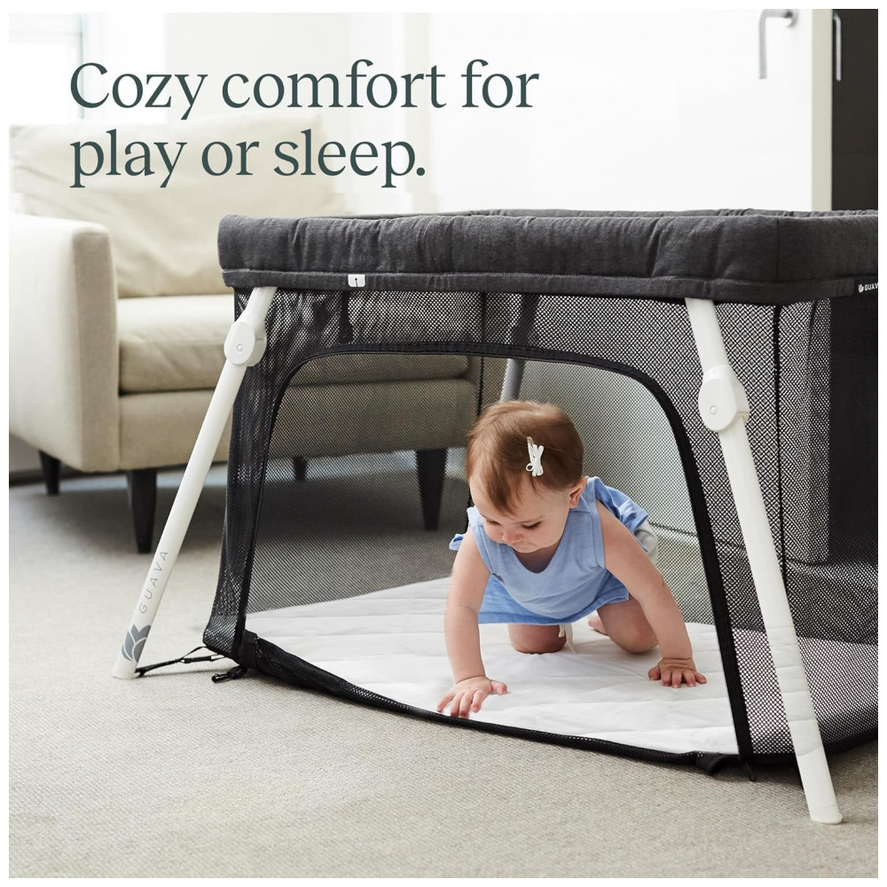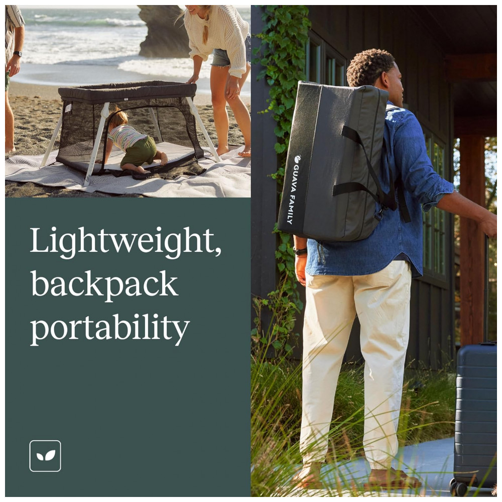 Cercadinho para Bebê com Design de Mochila Leve e Lençol Acolchoado Guava Family Cinza Preto e Branco
