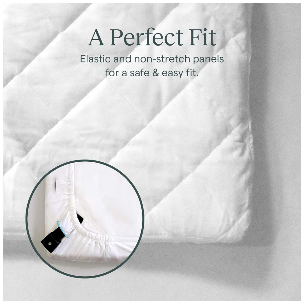 Este lençol de berço Lotus tem uma superfície superior lisa e aveludada luxuosa, juntamente com a quantidade perfeita de preenchimento de poliéster antialérgico, proporcionando acolchoamento excepcional para o máximo conforto. O padrão de ponto acolchoado reforçado aumenta a respirabilidade, enquanto o alongamento inerente garante um ajuste confortável e de longa duração durante toda a noite.