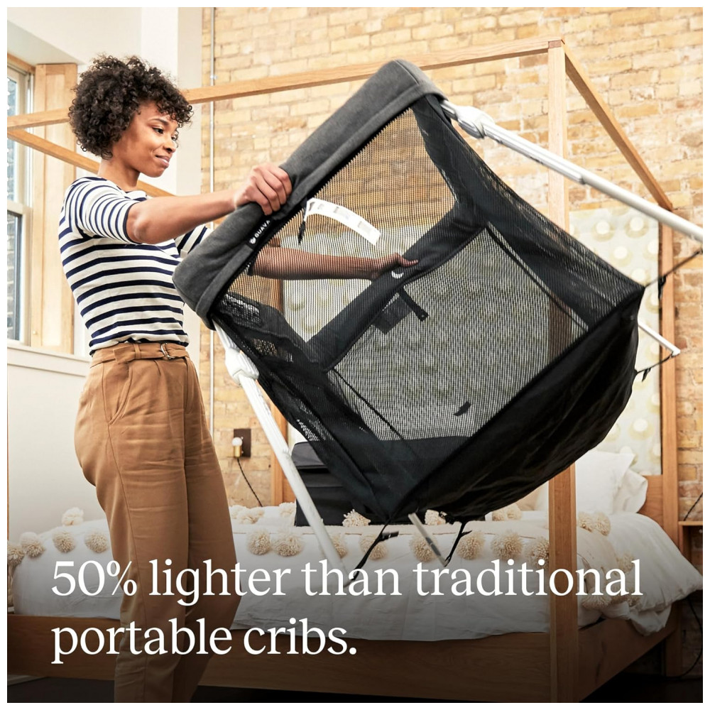 A tecnologia 3D Z Fold permite que ele se dobre de forma compacta o suficiente para transportar pelos aeroportos, tornando o Lotus Travel Crib um item essencial para viagens de bebê. O design durável e leve pesa apenas 6 kg e pode ser configurado em apenas 15 segundos A capacidade do berço dobrável de ser transportado como uma mochila leve permite que você viaje com as mãos livres com facilidade.