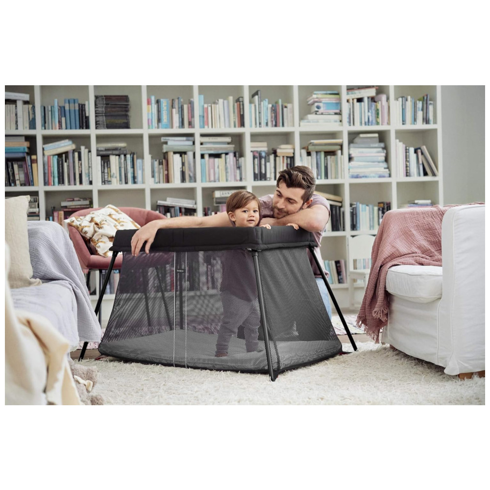 As laterais do berço de viagem são feitas de tecido de malha macio e arejado. Ele permite que você fique de olho no seu bebê e significa que ele pode ficar de olho. Quando não estiver usando, basta dobrá lo e guardá lo na prática bolsa de transporte.