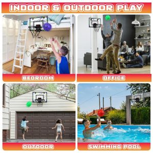 Brinquedos Infantis de Alta Qualidade: Mini cesta de basquete para crianças com rede de bola forte, aro de aço inoxidável, painel traseiro à prova de quebra de plástico PET não tóxico de 40 cm x 30 cm, além de grossas tiras de esponja à prova de choque no painel traseiro, que ajudam a reduzir o ruído e evitar arranhões na porta. Vem com 3 bolas de basquete de borracha coloridas. As crianças podem jogar basquete com amigos e familiares, aprimorando suas habilidades de tiro e condicionamento físico geral enquanto se divertem.