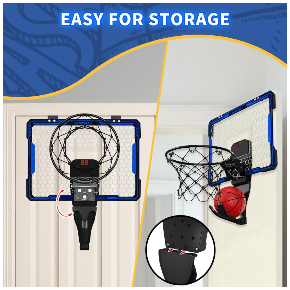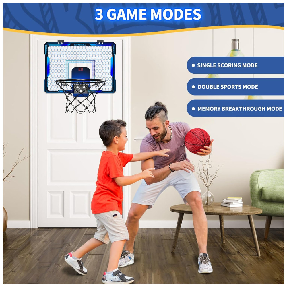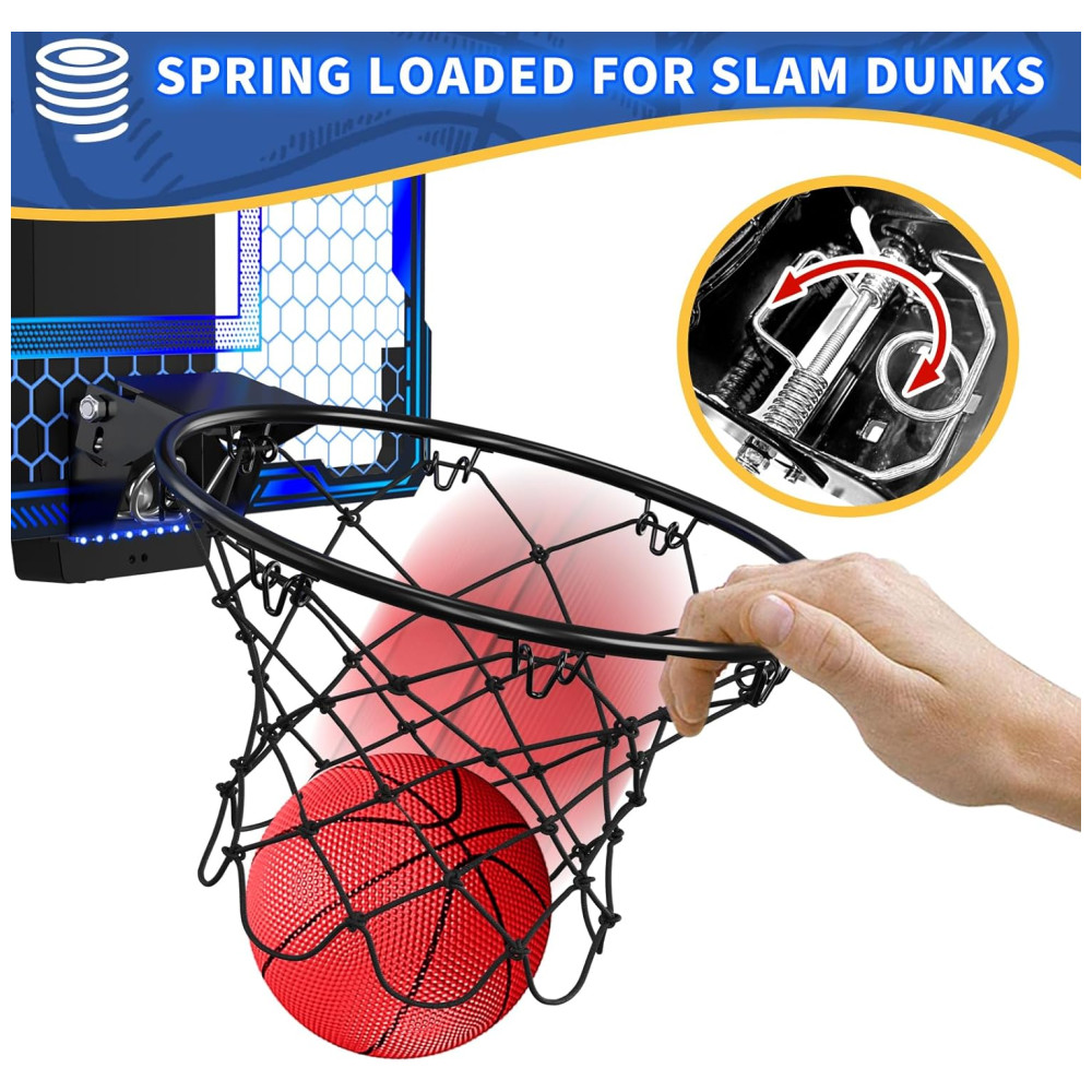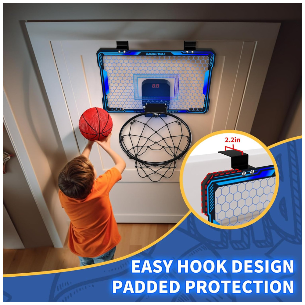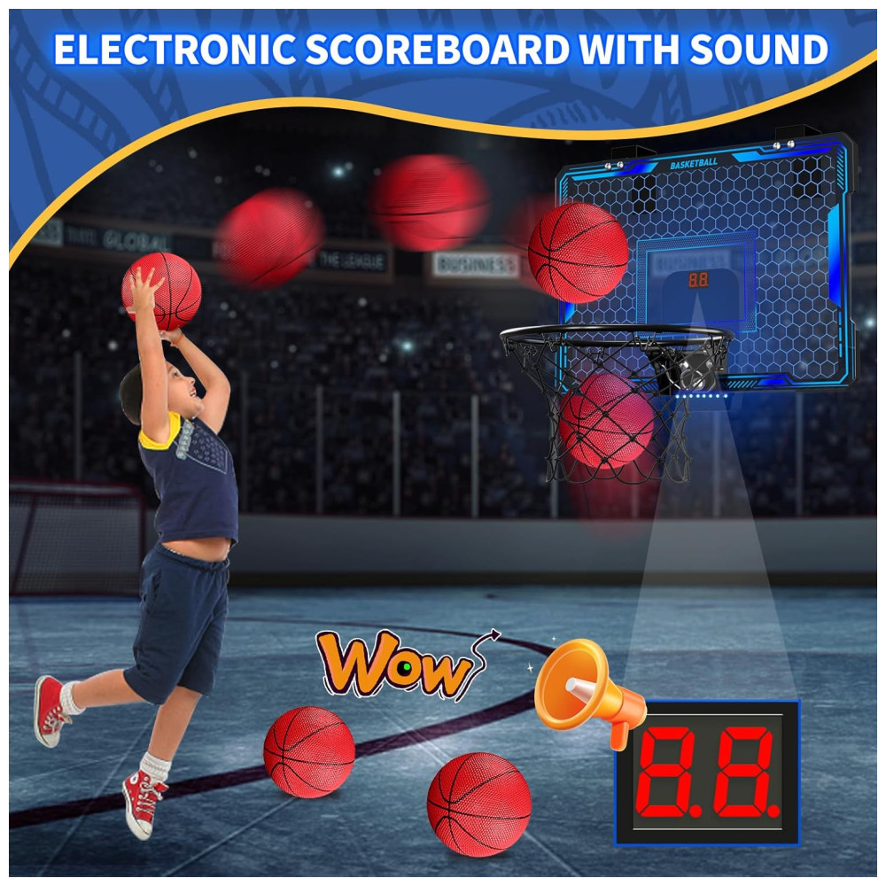Cesta de Basquete com 3 Bolas Placar Eletrônico Volume Ajustável Luzes LED de 7 Cores e 3 Modos de Jogo Ideal para Crianças e Adultos HYES Azul
