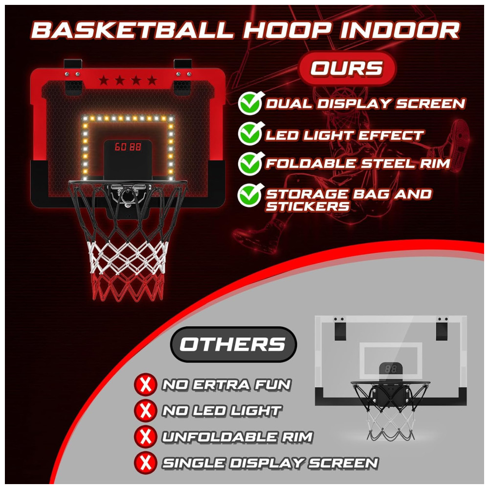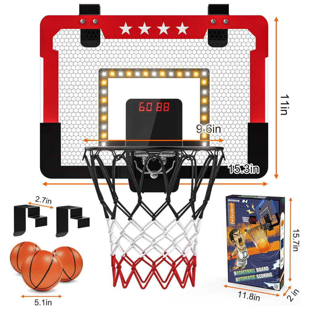 Cesta de Basquete com 4 Bolas Luz LED Placar Duplo Eletrônico e 2 Modos de Jogo para Crianças de 5 a 12 Anos Kroyedfuw Vermelha