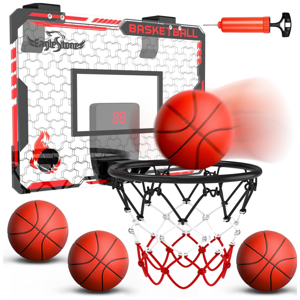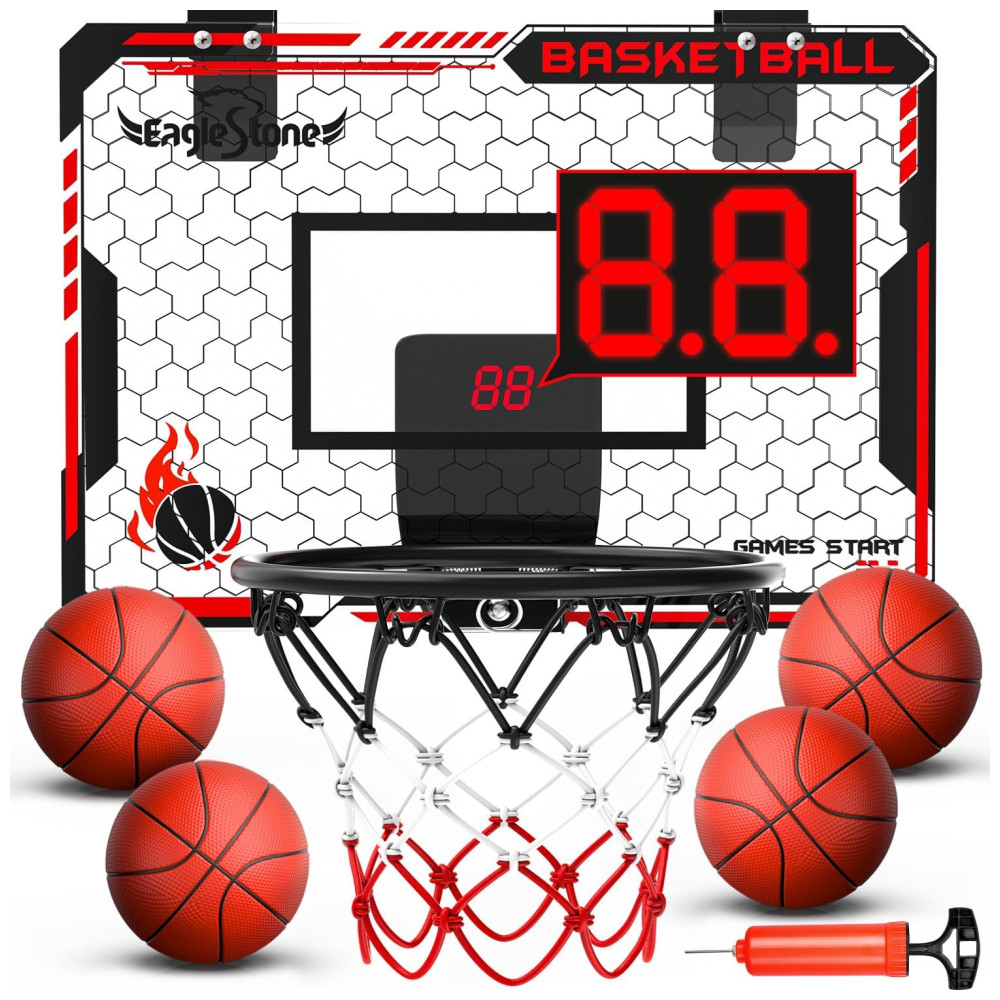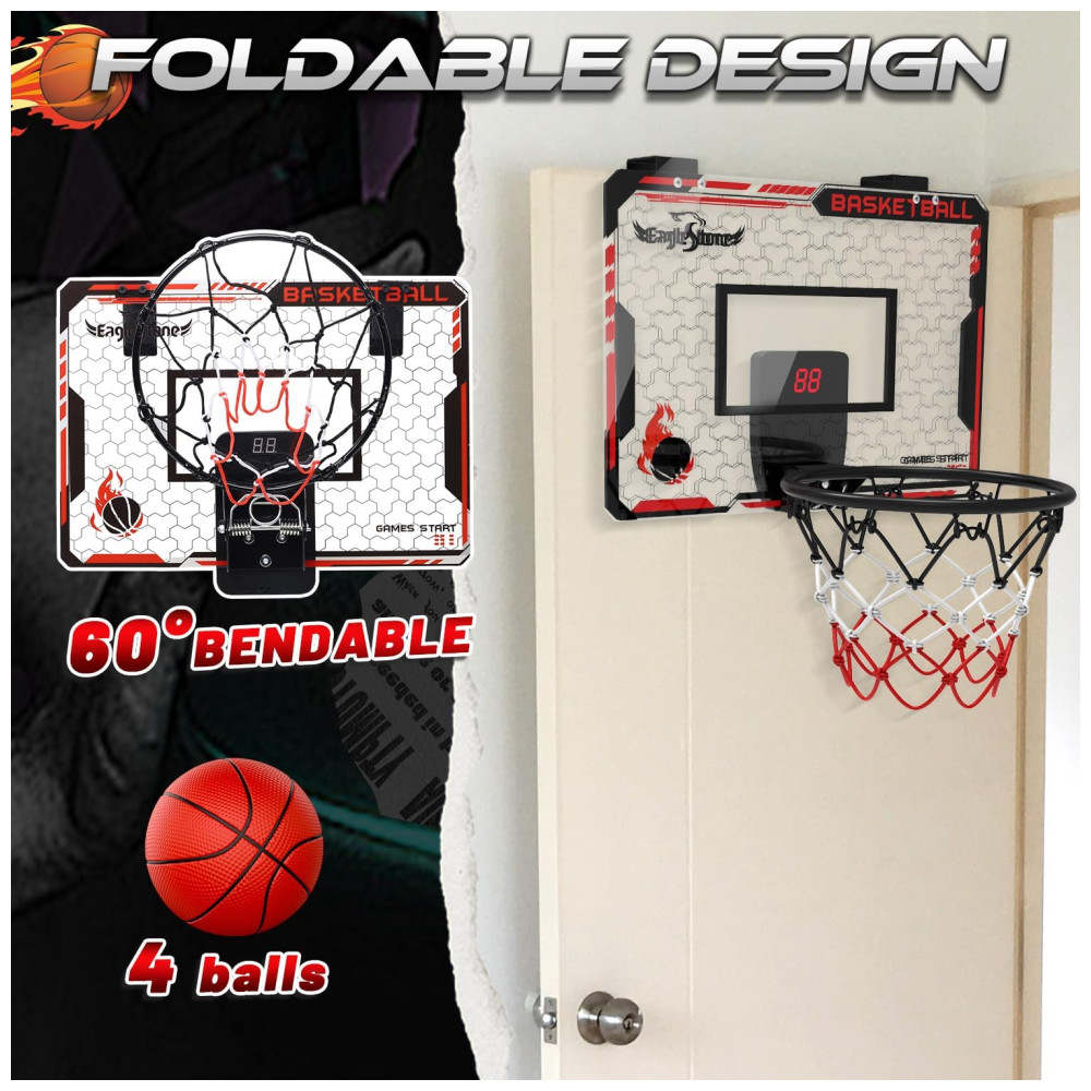 Cesta de Basquete com 4 Bolas Placar Eletrônico e Som de Torcida Brinquedo Ideal para Crianças e Adultos Eaglestone Vermelho e Preto