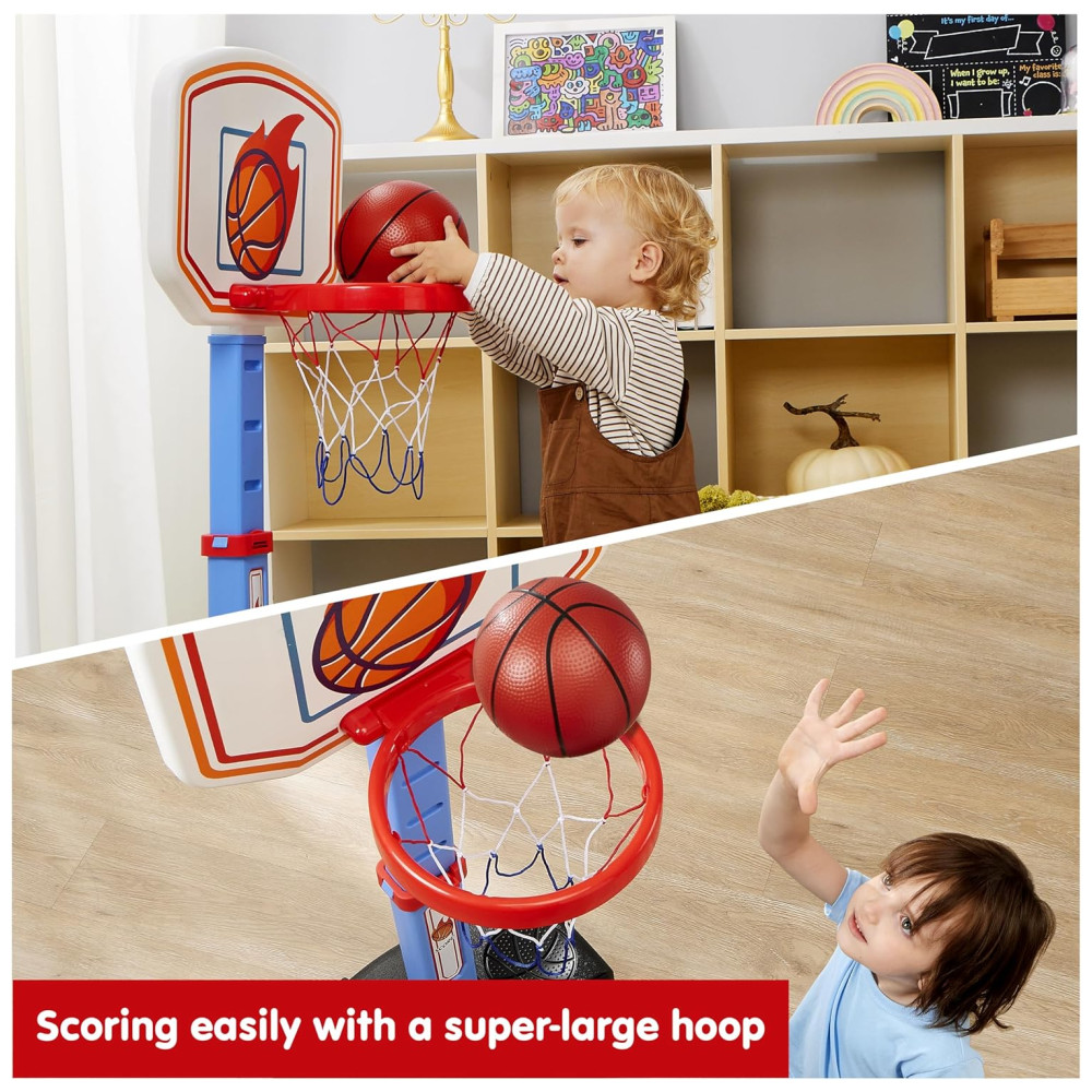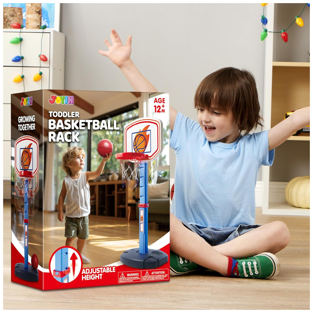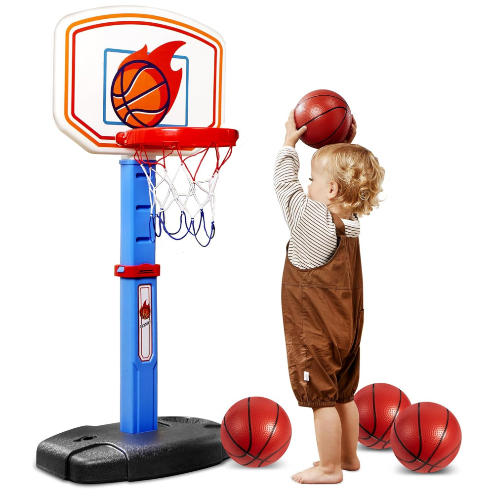 Cesta de Basquete Interno e Externa com 4 Bolas e Altura Ajustável de 76 cm a 106 Metros Presente Ideal para Crianças JOYIN Azul e Laranja