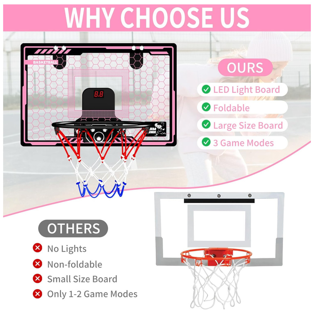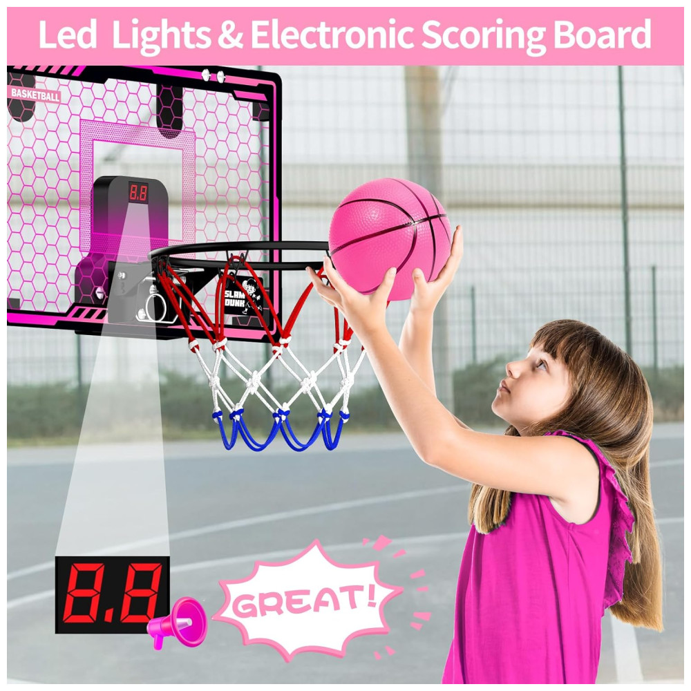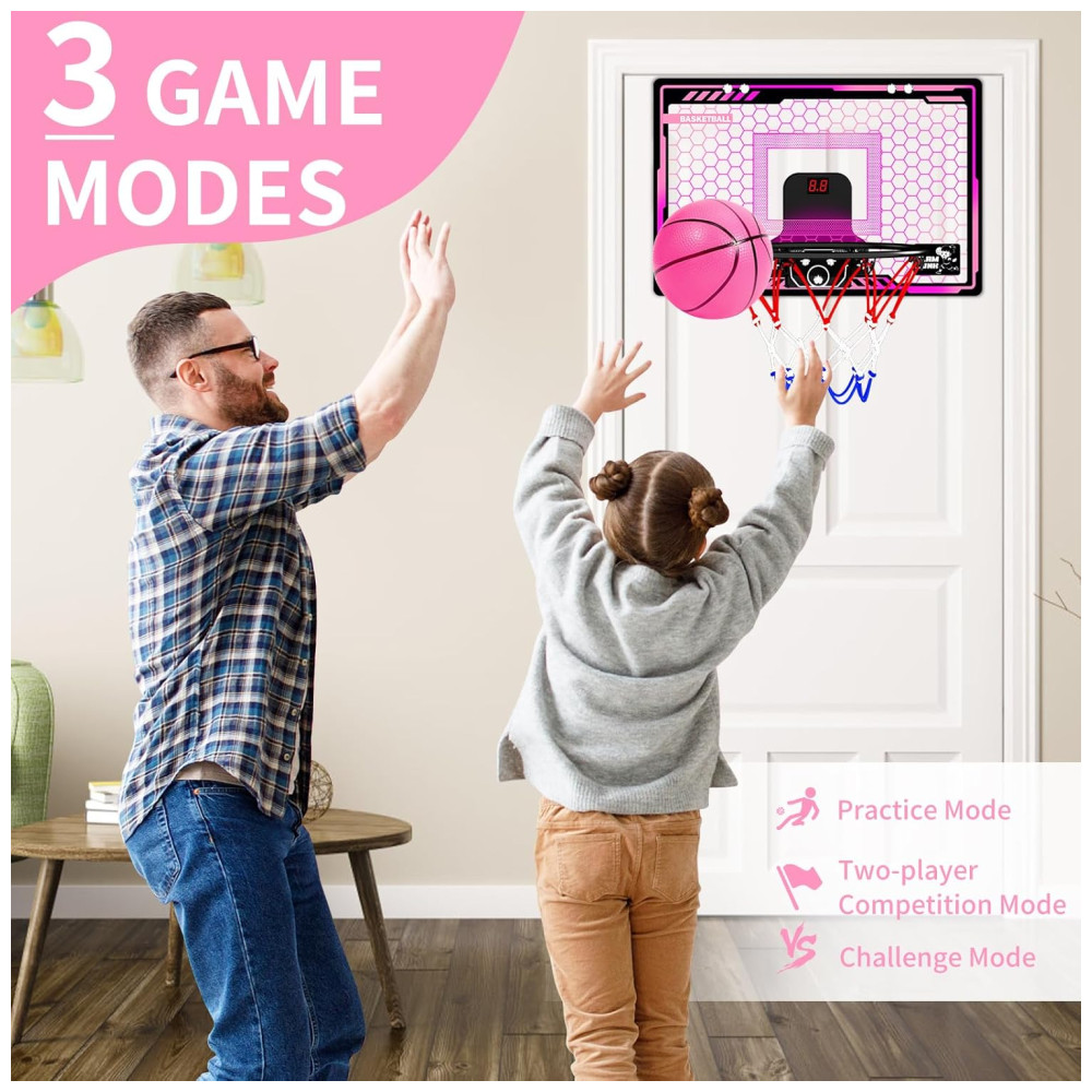 Cesta de Basquete para Meninas com Luz LED Placar Eletrônico e 3 Modos de Jogo para Crianças de 5 a 12 Anos HAMSILY Rosa