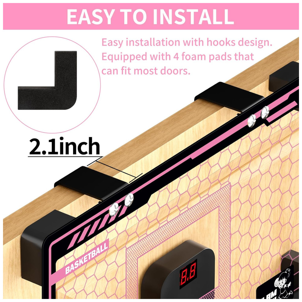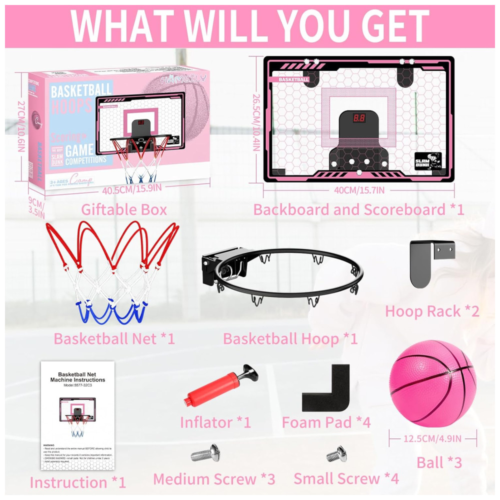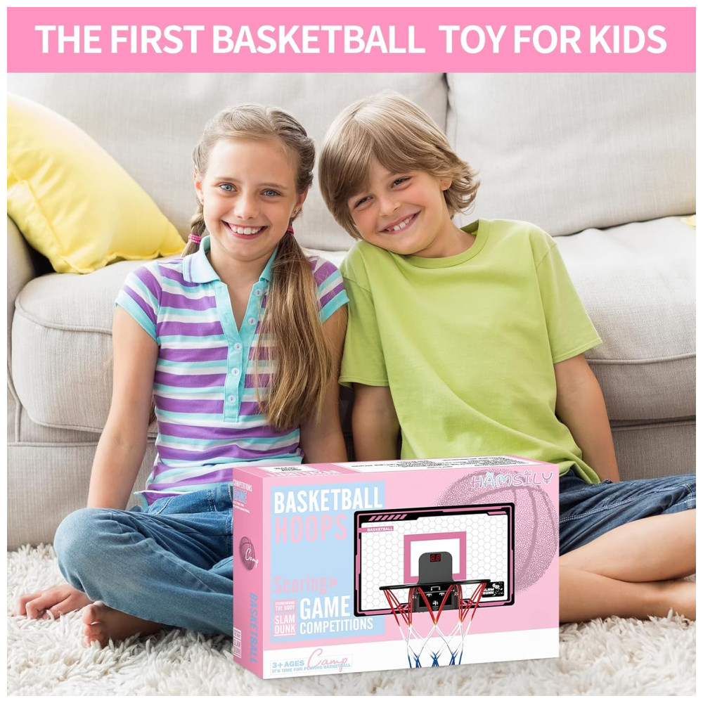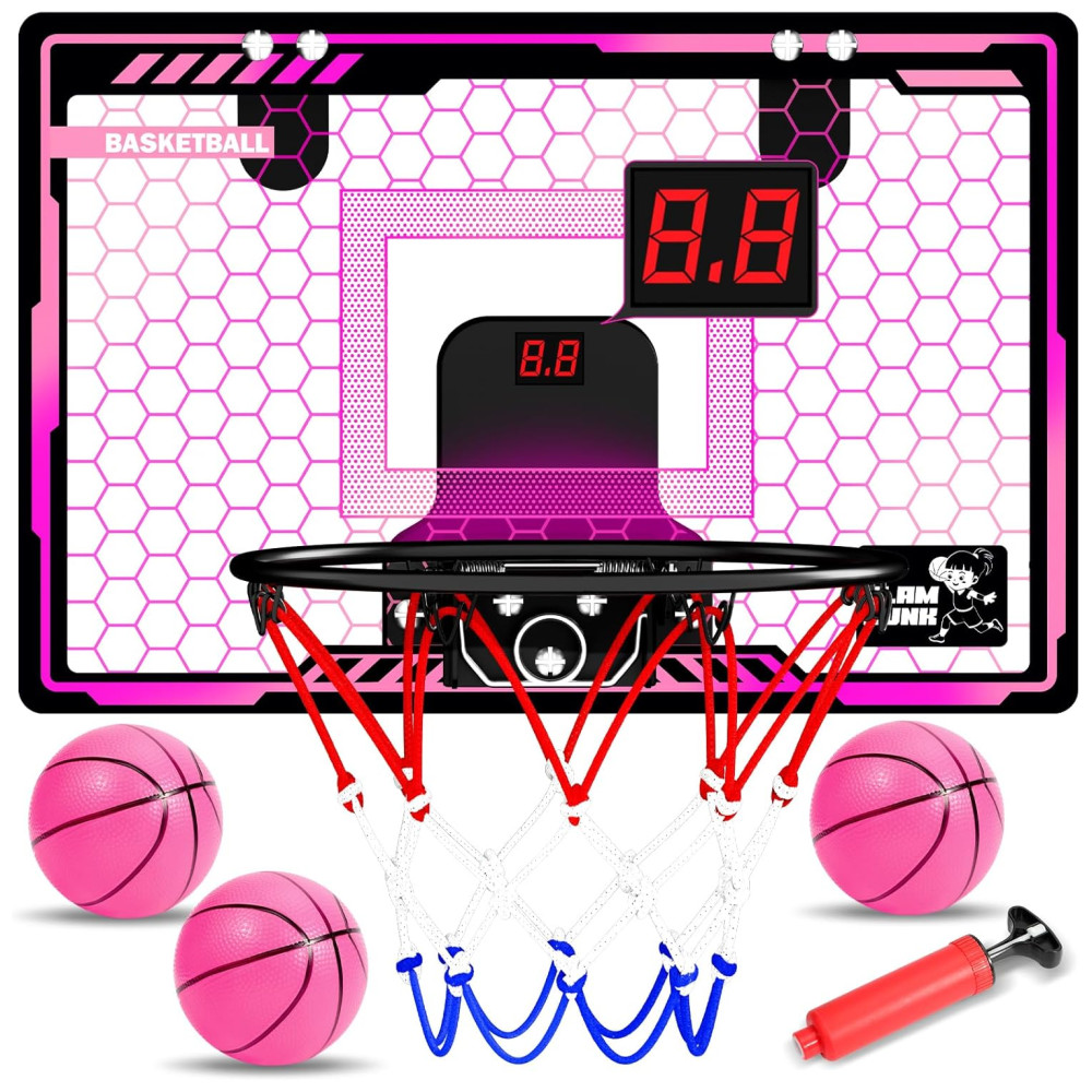 Cesta de Basquete para Meninas com Luz LED Placar Eletrônico e 3 Modos de Jogo para Crianças de 5 a 12 Anos HAMSILY Rosa