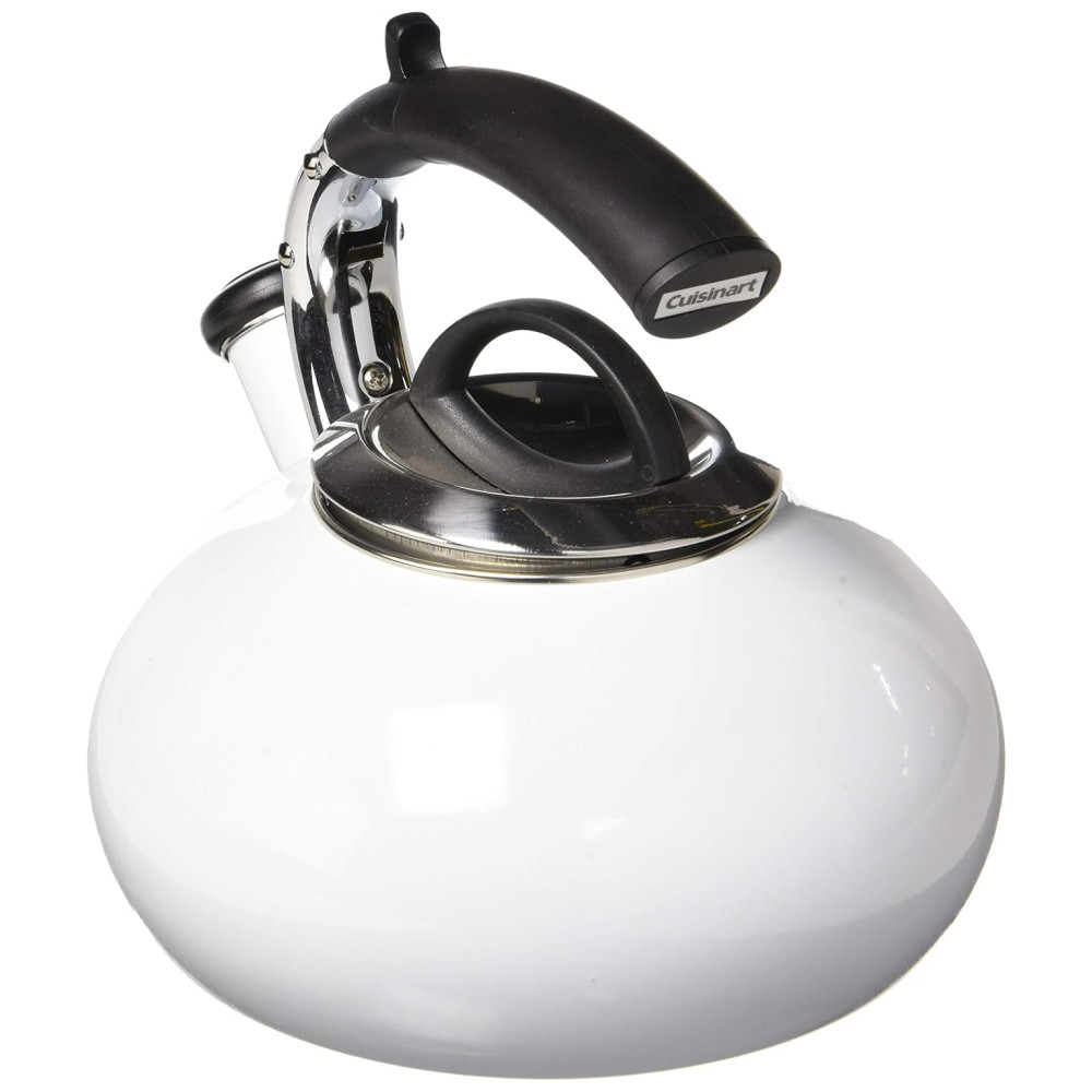 Contém 2 litros de água A chaleira aquece rapidamente e retém bem o calor Alça ergonômica resistente ao calor Chaleiras de aço Lavadora de pratos. O esmalte nas chaleiras de aço oferece um senso único de estilo e cor para complementar as cozinhas domésticas de hoje. Todas as chaleiras Cuisinart têm apitos convenientes para sinalizar que a água está fervendo. Características Aço inoxidável Chaleira de 2 litros O apito soa quando a água atinge o ponto de ebulição