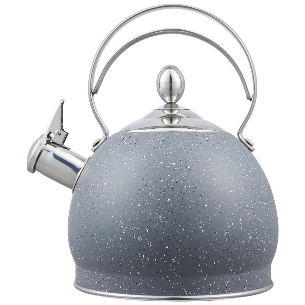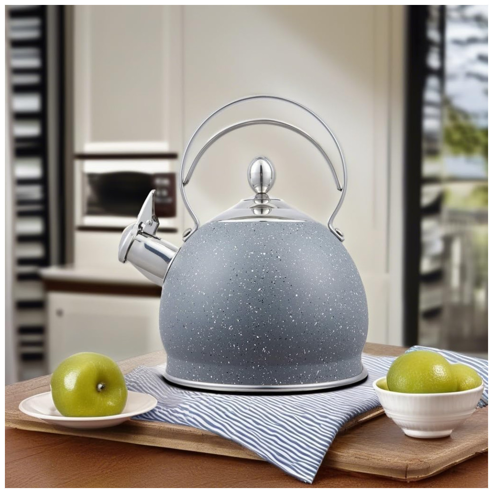 Chaleira 2L com Apito e Cabo ergonômico Aço Inoxidável S P Cinza