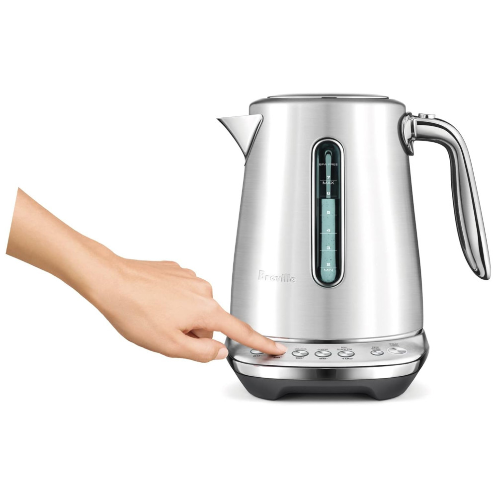 Faça seu chá ou café favorito da maneira que você gosta com o Smart Kettle Luxe da Breville. As cinco configurações de temperatura pré programadas permitem preparar facilmente café preto, verde, branco, chá Oolong e café francês. Ainda não está pronto para a hora do chá O botão manter quente com um toque mantém a água quente por 20 minutos e pode ser ativado antes, durante ou após a conclusão do ciclo de aquecimento da água. O Smart Kettle Luxe também possui uma tampa de abertura macia para liberar suavemente o vapor quente e impedir o respingo da água quente. Apoiado pela substituição de dois anos de um fabricante, o Smart Kettle Luxe conhece a temperatura ideal para proporcionar o sabor e a qualidade ideais do seu chá ou café favorito
