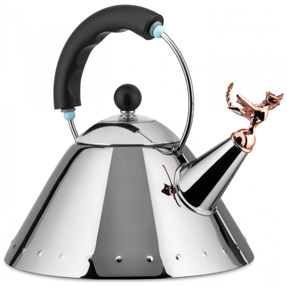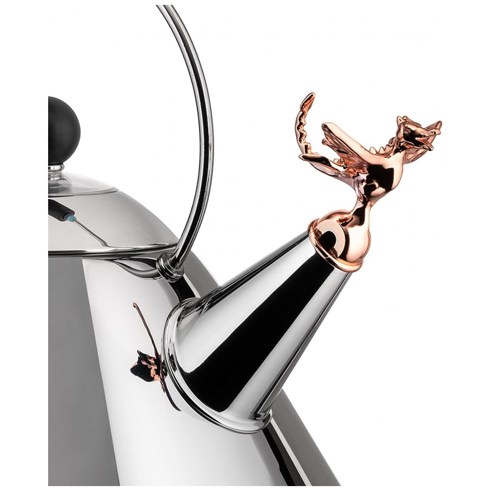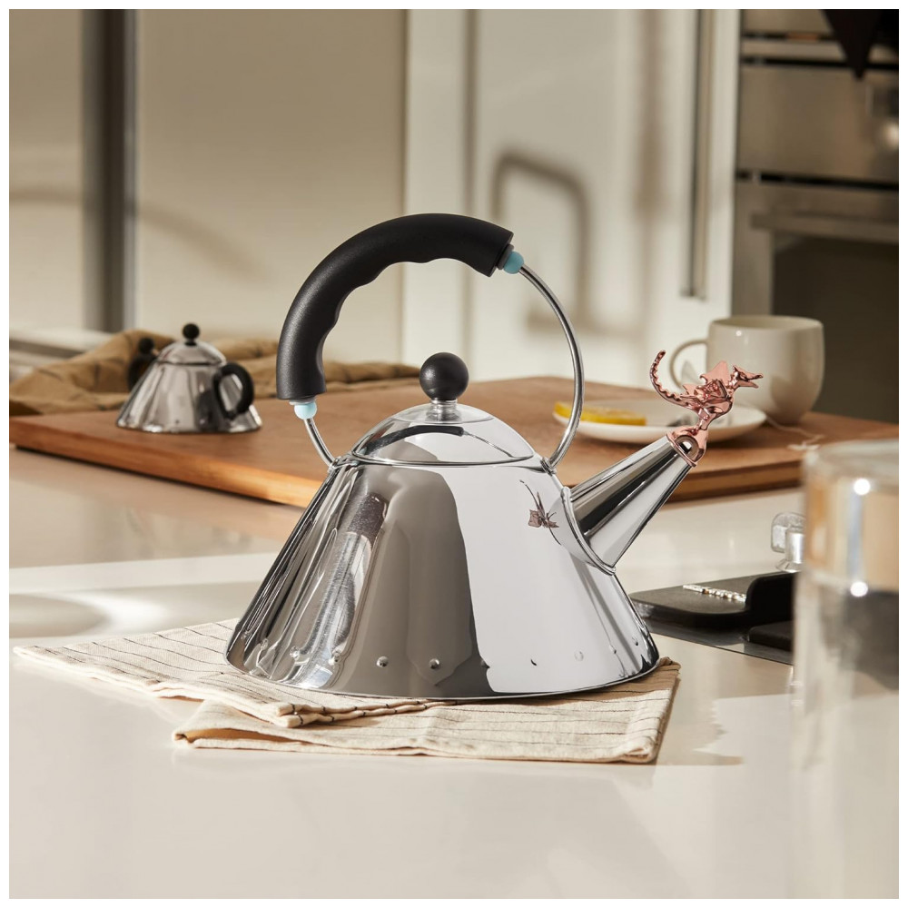 Chaleira de Chá 1.9 Litros em Aço Inoxidável com Apito e Alça Ergonómica Alessi Prata